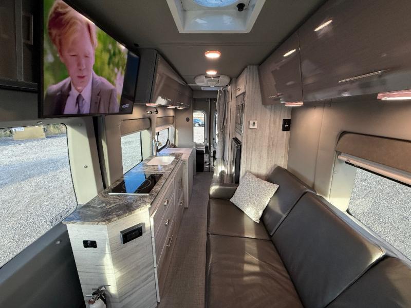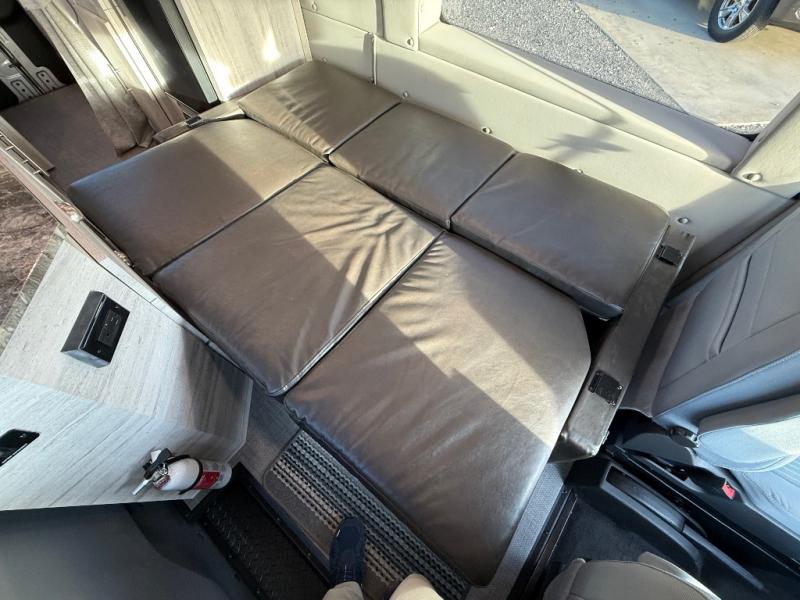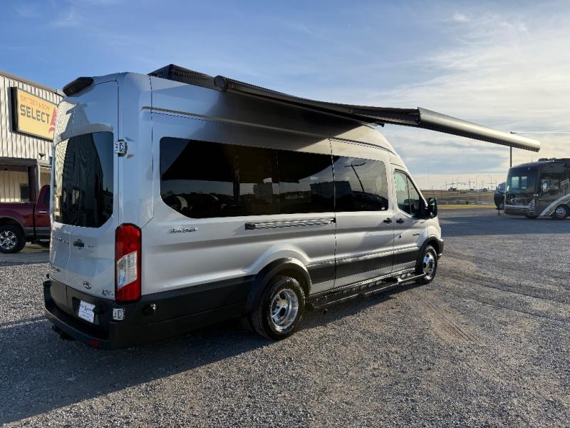Luxury and functionality come standard in the Bayside Class B gas motorhome by Chinook. The Ford Transit 3.5L Eco-Boost V6 engine can power your trips across the country or to your local state park. There is ultra-soft leather seating that is not only comfortable, but easy to clean as well. Some of the interior features you are sure to love are the platinum dark grey tone fabric and infinity woven gray WW-4 flooring, high quality CNC cut one-piece cabinetry, and a cab shade system to provide exceptional privacy. There are entertainment options you can choose from, such as an optional in dash GPS system, an optional satellite radio, and more. The Bayside also includes two 6V group 27 AGM house batteries in the under-floor storage, a 2,000 watt inverter with a charger, and an 11,000 BTU A/C system to keep you cool and comfortable.