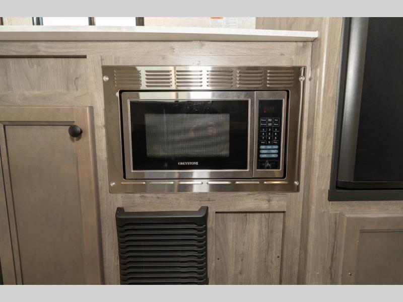 Each Coachmen Apex Nano travel trailer is super light in weight and features vacuum bonded Azdel fiberglass sidewalls and an Aluma-cage construction with a welded aluminum framed floor. Each travel trailer contains well built Pewter Maple cabinetry with hardwood mortise and tenon cabinet door frames, as well as Congoleum designer flooring throughout. You will also enjoy the high efficiency LED interior lighting, the AM/FM stereo with Bluetooth, the Evergreen sleep mattress, and the stainless steel microwave for you to warm up a quick snack. The skylight in each bath brings in more natural lighting and the outdoor shower helps eliminate any mud tracked through the trailer!