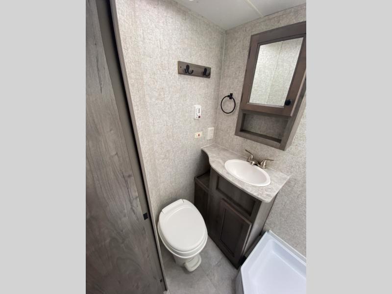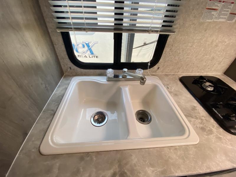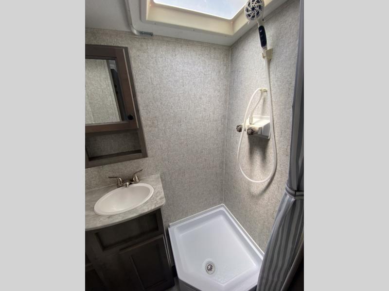 Each Coachmen Apex Nano travel trailer is super light in weight and features vacuum bonded Azdel fiberglass sidewalls and an Aluma-cage construction with a welded aluminum framed floor. Each travel trailer contains well built Pewter Maple cabinetry with hardwood mortise and tenon cabinet door frames, as well as Congoleum designer flooring throughout. You will also enjoy the high efficiency LED interior lighting, the AM/FM stereo with Bluetooth, the Evergreen sleep mattress, and the stainless steel microwave for you to warm up a quick snack. The skylight in each bath brings in more natural lighting and the outdoor shower helps eliminate any mud tracked through the trailer!