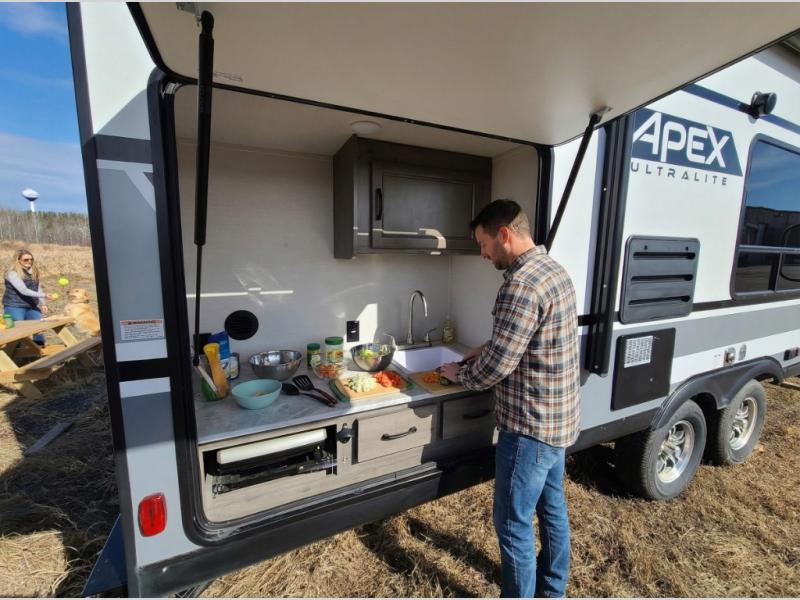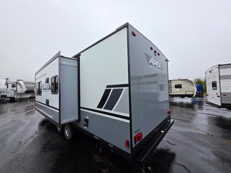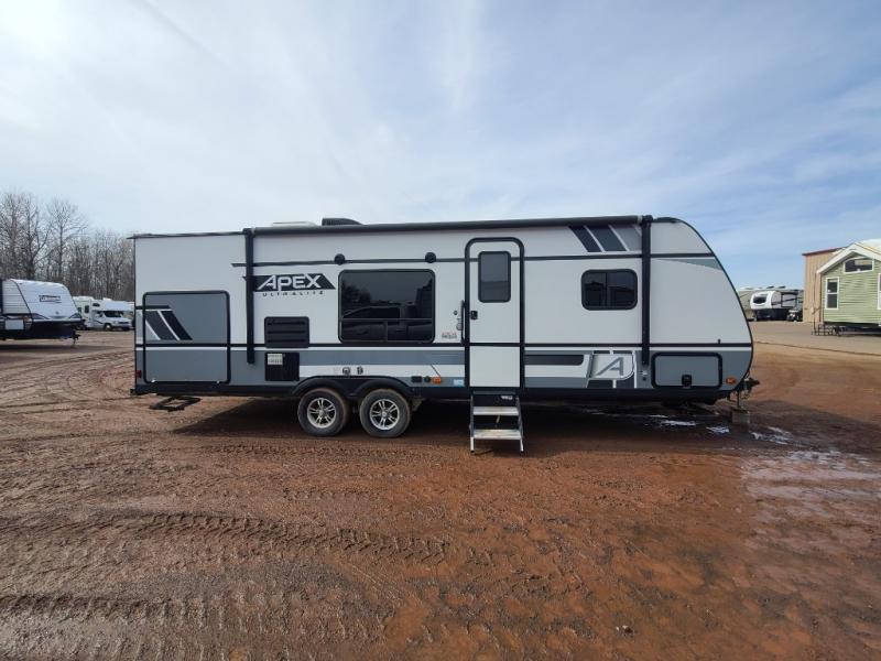 Each Apex Ultra-Lite travel trailer and toy hauler by Coachmen is easily towable, yet packed with comfortable features to make your camping experience great. These units feature LED lighting throughout, an interior convenience center, and a stainless steel microwave to make it feel more like home. You'll love the LED motion light in the exterior storage area and the hot/cold outside shower allows you to wash off your hiking boots and easily fill the dog's water bowl. Each model also includes an LED TV, an AM/FM/CD/DVD stereo with Bluetooth, and a USB charging station so you can still enjoy some entertainment and stay connected!