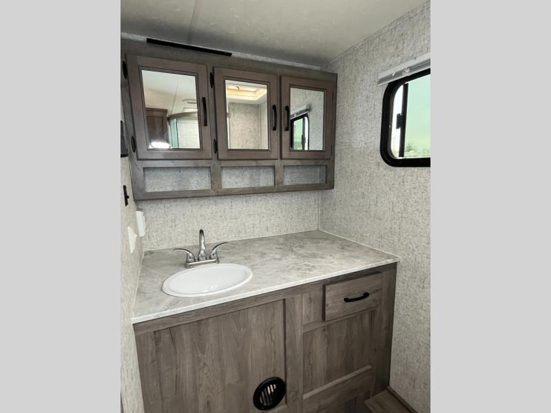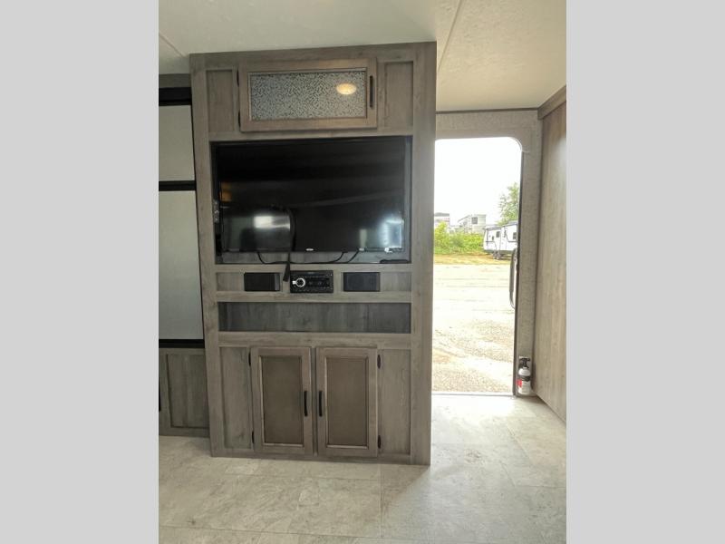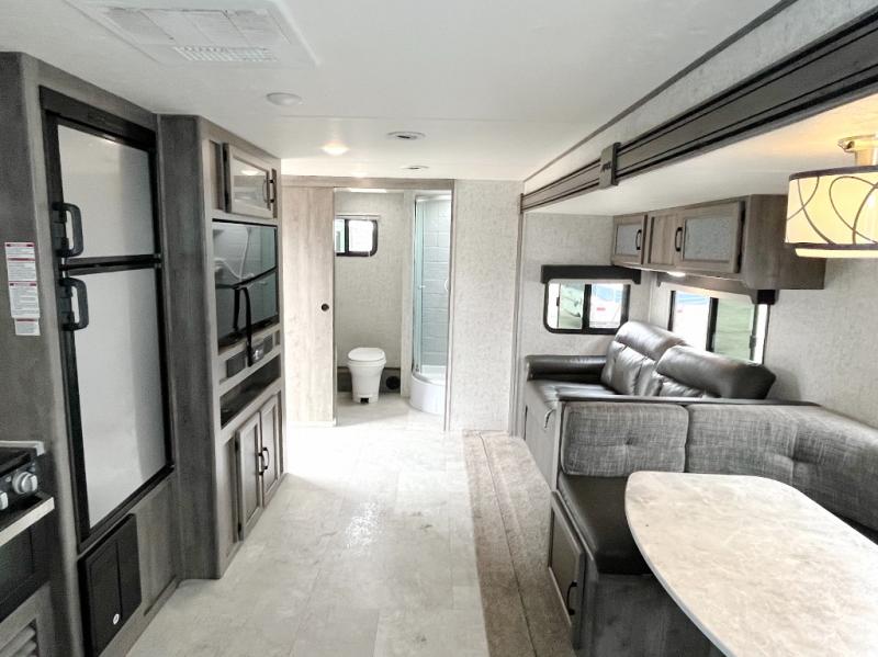 Take one look at this travel trailer and you can be sure you've just found your new RV. You'll love the extra interior space the large slide out provides and here you'll find a U-shaped dinette and a hide-a-bed tri-fold sofa that is great for enjoying meals together, relaxing, and additional sleeping space. The chef of the family will have everything they need to prepare breakfast, lunch, and dinner and the extra counter space will be a big plus. Bring along all of your valuables since this unit includes overhead compartments, dual wardrobes in the bedroom, a walk-in closet, plus an exterior pass-through storage for all your camp gear.