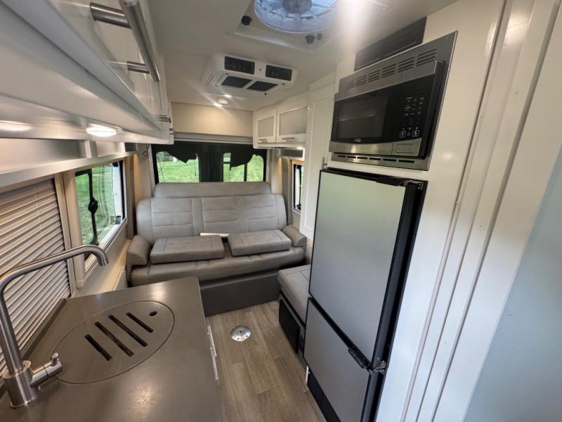 Plan to see the country in this Beyond Class B gas motorhome that includes five seatbelts for your extra ride-along guests. Easily prepare all your meals on the two-burner LP cooktop, and all your perishables can go in the 6 cu. ft. Nova Kool refrigerator with a bottom freezer. Stretch your legs around the campground or go on a hike, and the wet bath will allow you to freshen up before bed. This model includes a rear power sofa that converts into a 68" x 76" bed and a removable table so that you can enjoy your coffee and meals together.