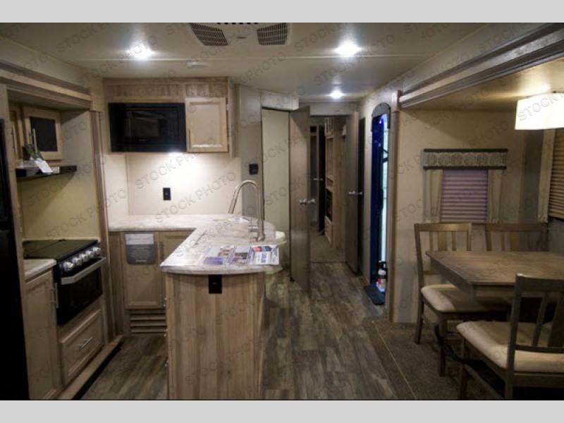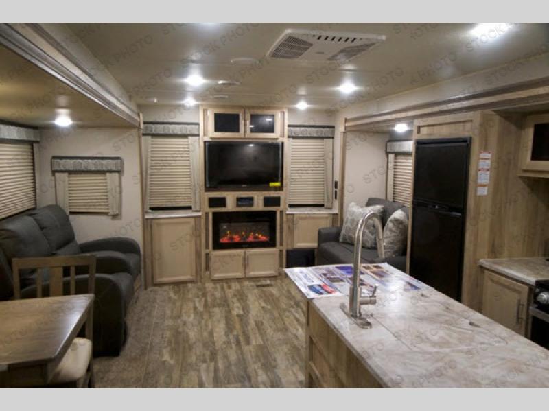 Three slides open up the interior of this Catalina Legacy Edition travel trailer and allow you to enjoy your time inside! The lounge recliners are a great spot to sit down and unwind after a long day, and you can switch on the 32" flat screen TV while you relax. You can choose to add the optional fireplace to make it even cozier too. An RV queen bed slide in the front master suite with a front closet that is prepped for you to add the optional washer and dryer so that you can enjoy clean clothes throughout your entire trip.
