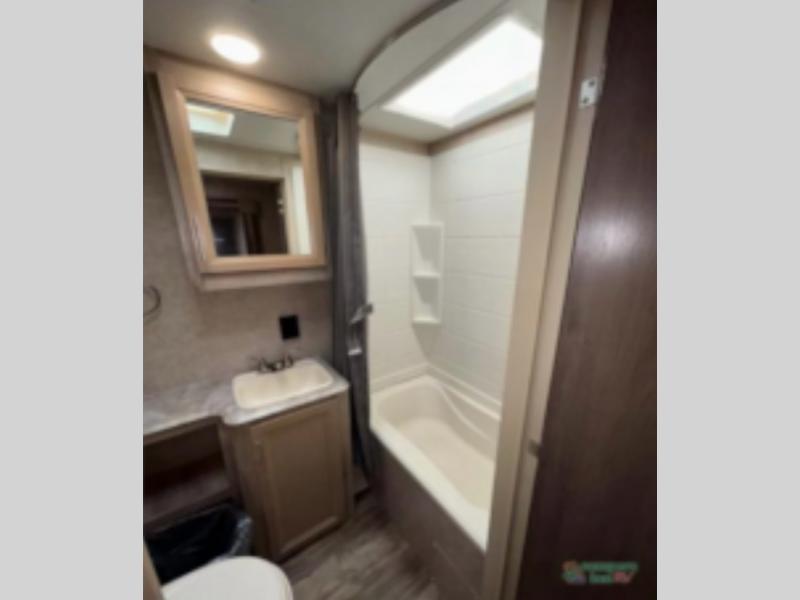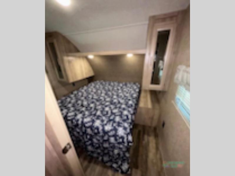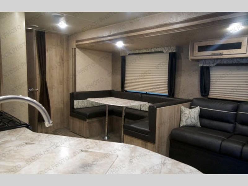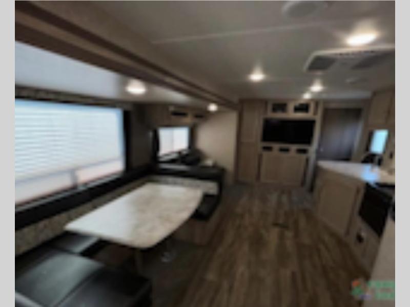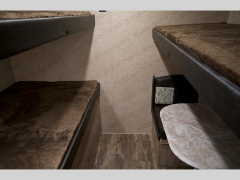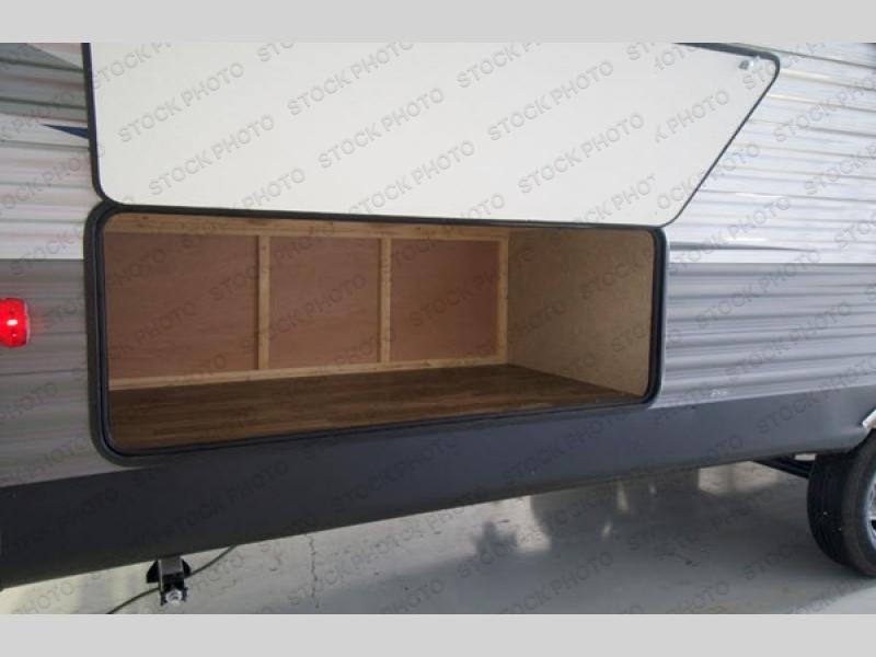 Load up your family and all your gear to enjoy camping in comfort inside this spacious travel trailer. Just imagine your children laughing in the rear semi-private bunkhouse with a set of double size bunks, and a kids dinette with a flip-up bunk above. You can store totes and such in this room while traveling with the exterior easy store door. And the front exterior pass-through storage allows you to bring along larger items such as fishing poles and camp chairs. The chef will appreciate the full kitchen amenities inside, plus you can add an optional full size camp kitchen outside. Take a look around the exterior then step inside to find even more features you will love!