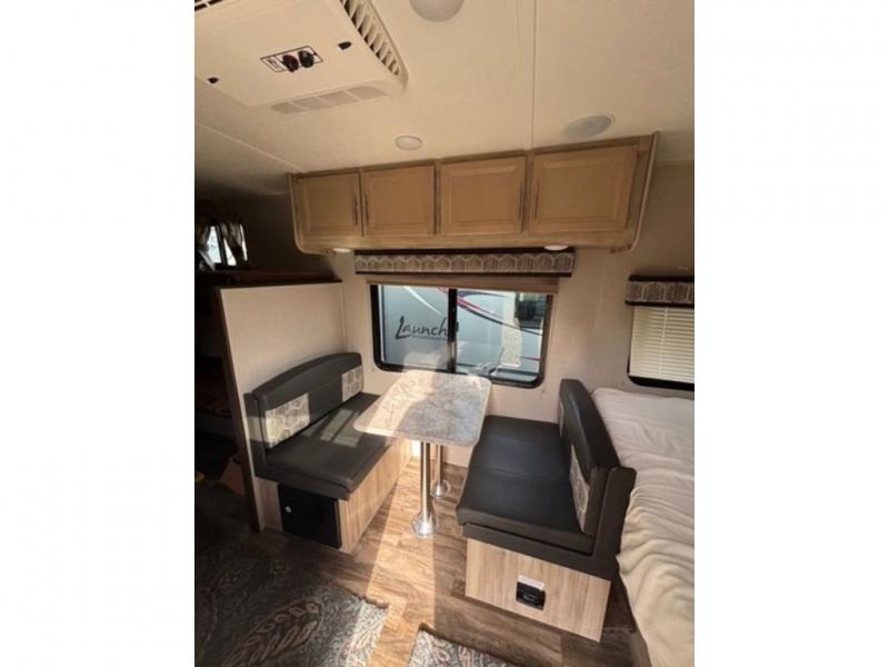 Sit back, relax, and enjoy the great amenities found in this Catalina Summit Series 7 travel trailer! There is a set of bunk beds in the back next to the bathroom for compact sleeping, and the booth dinette will be a great help for dining during the day and sleeping at night. A bedside countertop at the head of the RV queen bed will come in handy for holding your alarm clock, glass of water, or cell phone, and the overhead cabinets all throughout will make it easy to keep your gear stored away.