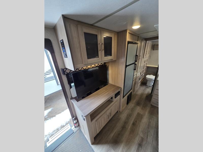 Whether you're hiking out in the woods or lounging on the beach, this Freedom Express Ultra Lite travel trailer will be a wonderful unit to return home to each evening. You'll find that the single slide will open up the interior so that you can have more gathering space once the Murphy bed has been folded away for the afternoon. When you're ready to prepare a hearty meal to feed the family, you can grab your ingredients from the pantry and head to the three-burner range, or you can take your prep outside to the outdoor kitchen.