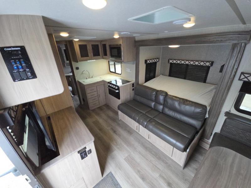With any Freedom Express Ultra Lite travel trailer by Coachmen, you will appreciate the ease of towing behind your family vehicle. All the tanks are located under the floor to lower the center of gravity for increased storage capacity and improved handling down the road. Inside of each trailer, you'll enjoy features such as LED lighting throughout, Congoleum Designer Carefree flooring, an LED TV, plus a double-door refrigerator, just to name a few. The pass-through storage with an LED light strip allows you to easily bring along those larger camping items, plus there is an electric awning with LED lights outdoors, as well as an exterior shower station to wash off your hiking boots. Come see how you have the freedom to explore in a Freedom Express Ultra Lite travel trailer today!