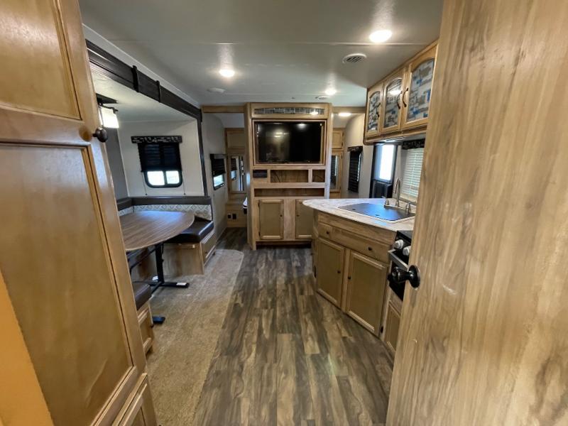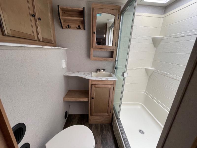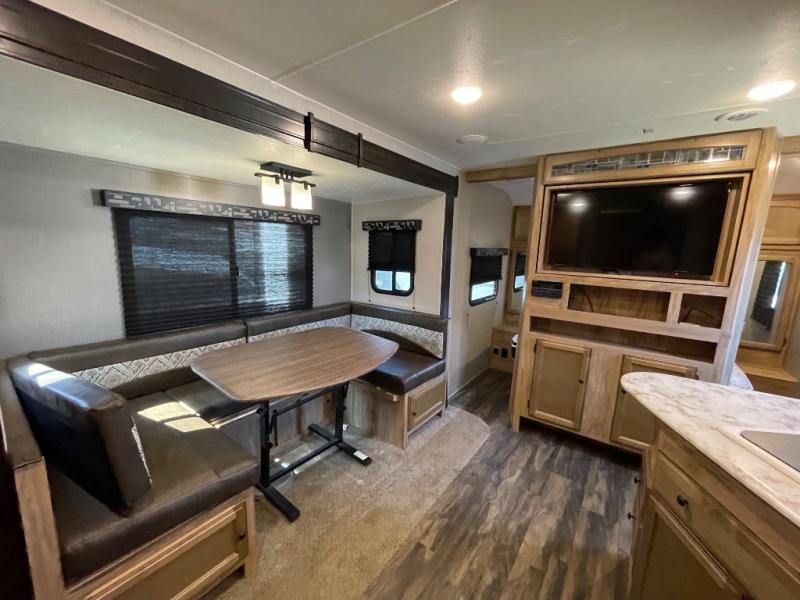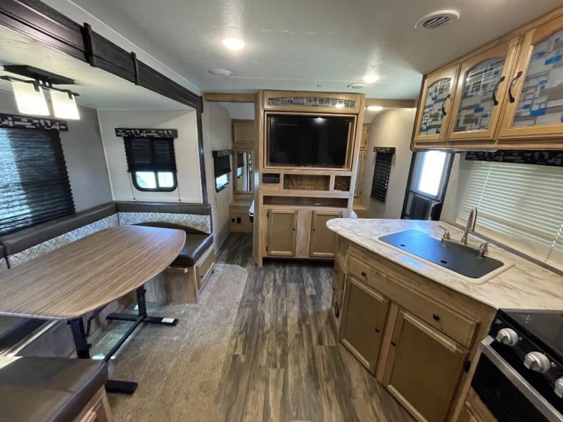 Imagine camping every other weekend in this Freedom Express Ultra Lite travel trailer with your spouse and kids. The queen bed in the private bedroom will provide a great night's rest, and the kids can crash on the U-shaped dinette once folded down. This unit is satellite ready and includes a pantry for your non-perishables. The full rear bath with a 30" x 36" shower makes it easy to stay clean throughout each of your adventures. Everyone can grab their camp chairs and prepare for a fun evening outdoors because this unit includes an outdoor camp kitchen and a 14' electric awning with LED lights!