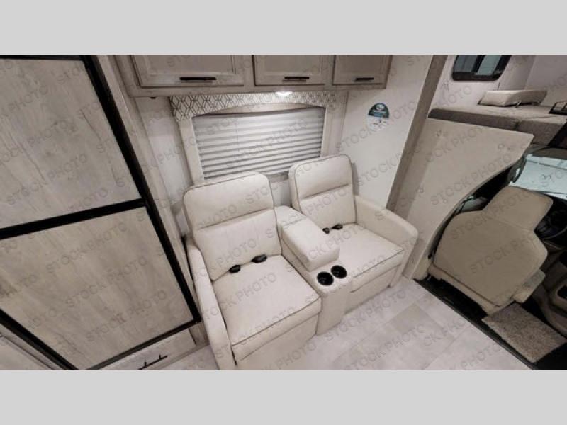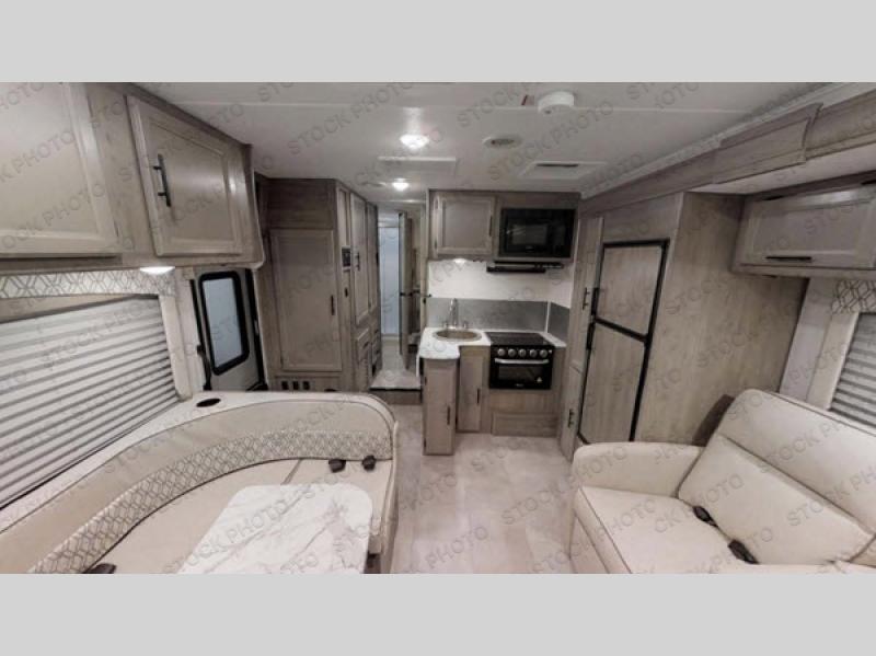 With the Freelander motorhome you will get a reliable and quality Class C gasoline coach that contains more factory-installed features than anyone else. The Freelander features Azdel composite walls and a fiberglass exterior to keep the entire structure lightweight, and is has been prepped for solar panels to make it easier for you to go off-grid whenever you choose to do so. LED lighting and high-quality furnishings, like the nutmeg wood grain cabinets and kitchen backsplash, give the Freelander's interior a touch of elegance, and the reclining cab seats will be helpful to have as you make your way across the countryside.