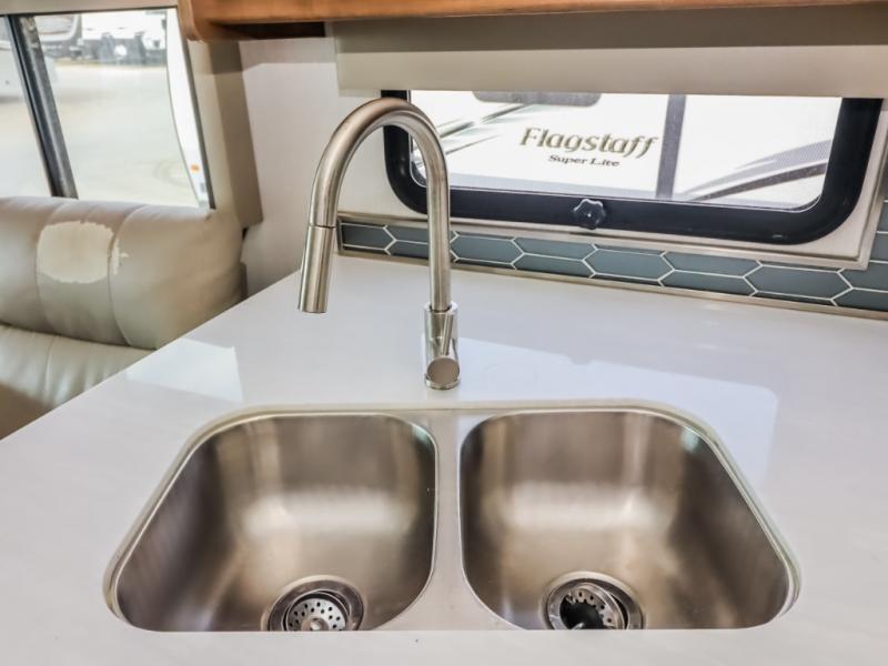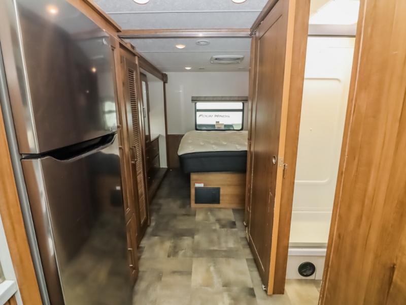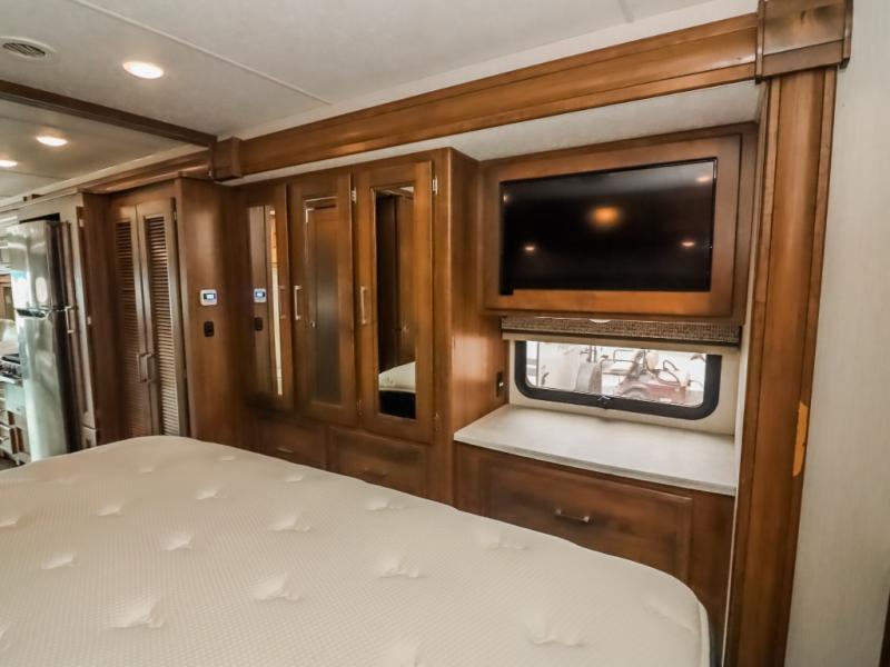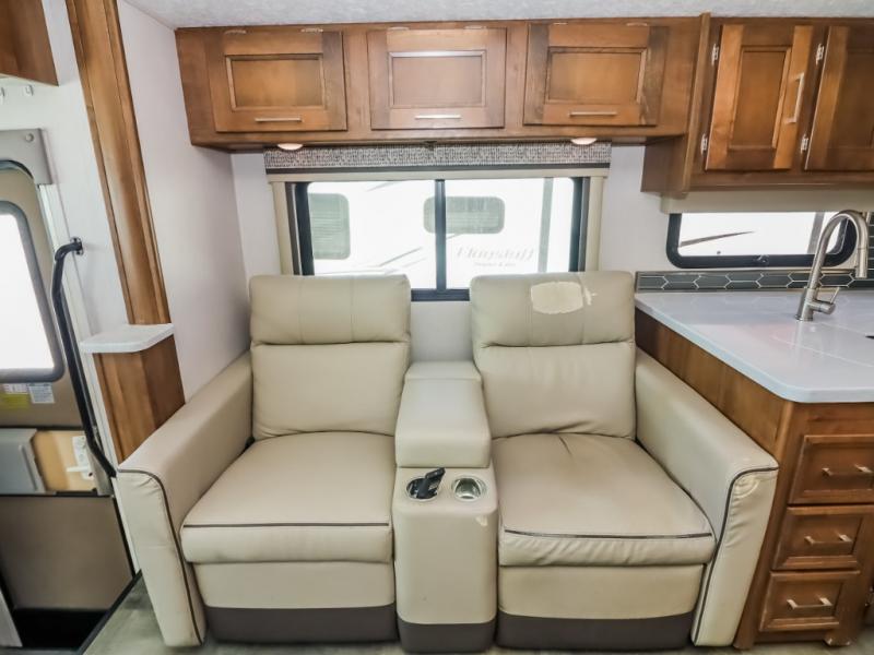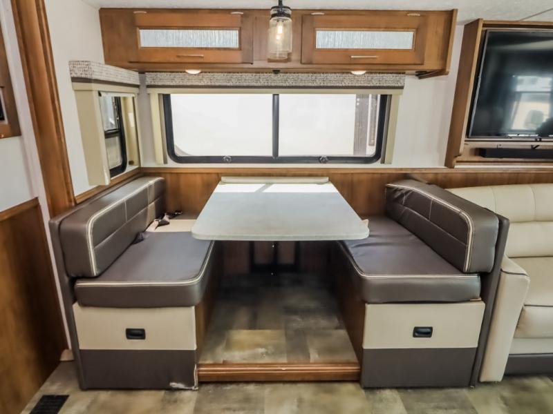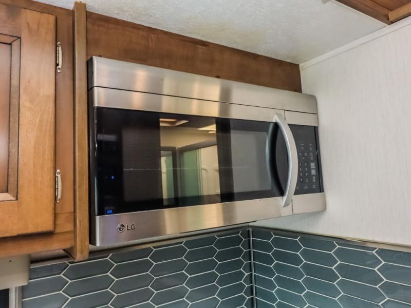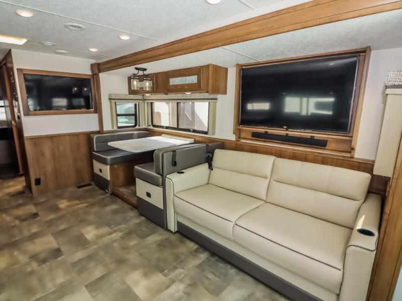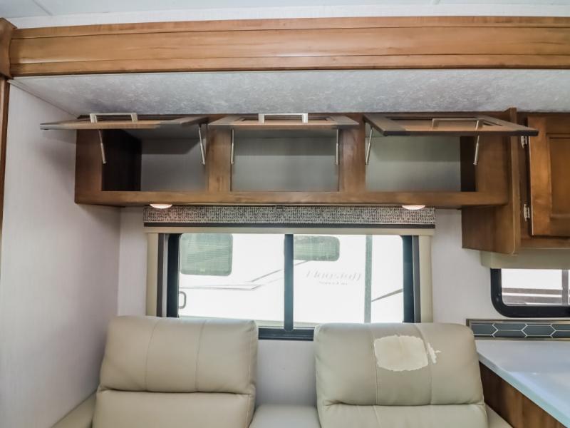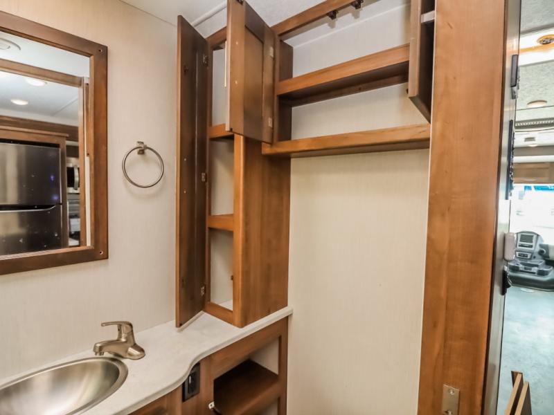 With a full-wall slide out in this 35OS motorhome, you will enjoy plenty of walking around room! There is also a booth dinette and 68" sofa bed slide out with a 50" TV for even more room, and across from it is the 68" theater seating for more comfortable seating. The drop down overhead bunk is the perfect place for a couple of kiddos or one adult to sleep. The rear private bedroom welcomes you to a peaceful night's sleep on the king-size bed with a CPAP station above it, and just outside the bedroom is a pantry area that is prepped for you to add the optional washer and dryer so that you can extend your vacation even longer with clean clothes!