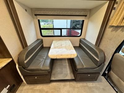 This Prism Elite makes any type of traveling comfortable from a local volleyball tournament to a long road trip, you will have everything you need plus some extras! Imagine relaxing in the cab seats with a handy pedestal table to set your snack or book down. The 44" x 71" dinette can be utilized to eat your meals, scrapbook, work and play games as well as an extra sleeping space. You will love the storage throughout on those long trips, and the kitchen offers all the appliances needed to make meals including a countertop extension. The full bathroom and queen bed will keep you refreshed and ready for any adventure. Plus, there is even a cab-over bunk!
