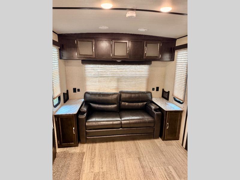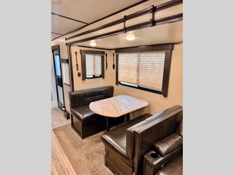 It doesn't matter if you prefer to spend your getaways by the lake or in the mountains because this Spirit Ultra Lite travel trailer will always deliver a comfortable experience for you and your family! The kitchen gives you plenty of space to cook with the dual opposing slides, and the island gives you an extra counter space to prep dinner, clean up afterwards, and offer a snack area. You will also fully enjoy spending your nights resting on the queen-size bed in the front private bedroom with lots of storage, and since this unit can sleep five people comfortably, everyone traveling with you will wake up refreshed and ready to tackle another day of adventures.