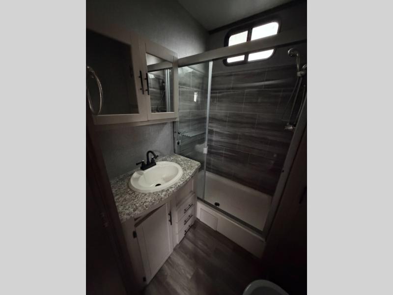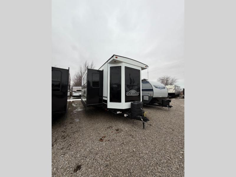 The Hampton destination trailer by CrossRoads RV allows you to choose your own location and return whenever you like! Designed to feel just like your very own home, with amenities and conveniences to make every trip comfortable. Constructed with a one piece radius roof, fiberglass floor and roof insulation, and an enclosed underbelly, you can be sure your trailer will last for years. Inside, you will love the look of the wood blinds and solid surface countertops, the openness from the eight-foot ceilings, and the comfortable furniture and bedding. Every Hampton has been created for dependable function, outstanding comfort, and long-lasting construction, choose your favorite model today!