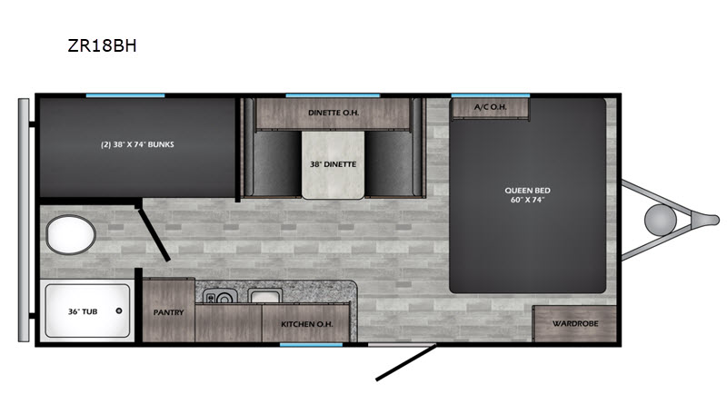 CrossRoads RV Zinger Lite travel trailer ZR18BH highlights: