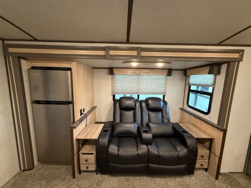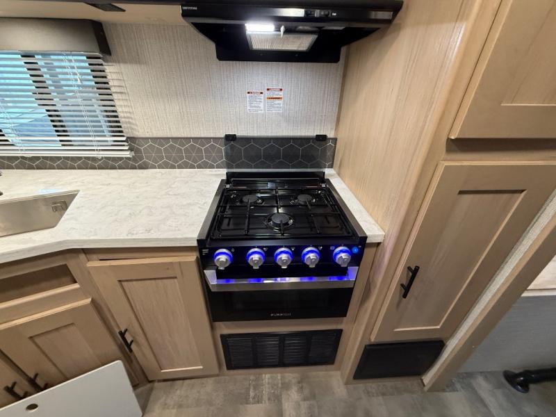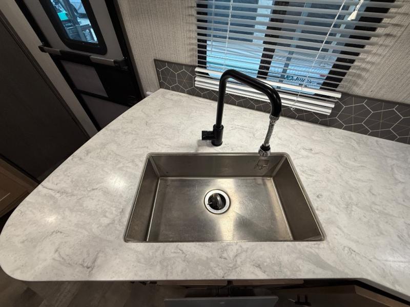 With any Cruiser Radiance Ultra Lite travel trailer you will enjoy a 6' 11" barreled ceiling, providing you with extra interior space, and LED lighting to make you feel at home. Each unit features multiple charging stations with 12v and USB ports, and comfortable residential-style free standing furniture with top-stitching. These models include many more features you will love, including solid surface countertops with matching sink covers, an LED awning light, plus so much more! Choose your favorite floorplan today and hit the road tomorrow!
