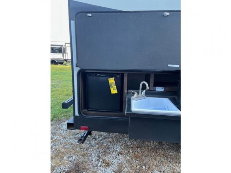 Taking this Shadow Cruiser travel trailer on your next big adventure is a smart choice because this unit comes equipped with everything you will need for a successful and enjoyable outdoor excursion. With enough space to sleep nine people comfortably, you never have to leave anyone behind, and the front, private bedroom gives you a chance to unwind and relax after a long day of exploring. When you wake up in the morning, you will find it easy to fix up a hearty meal to feed your large party because of the three-burner range that has been included in the kitchen, as well as the outdoor kitchen that has been added for extra cooking space.