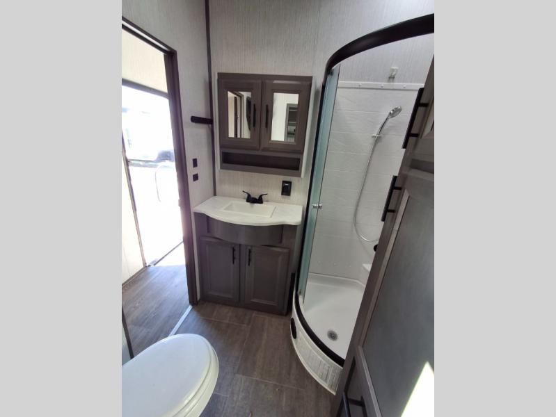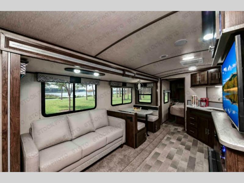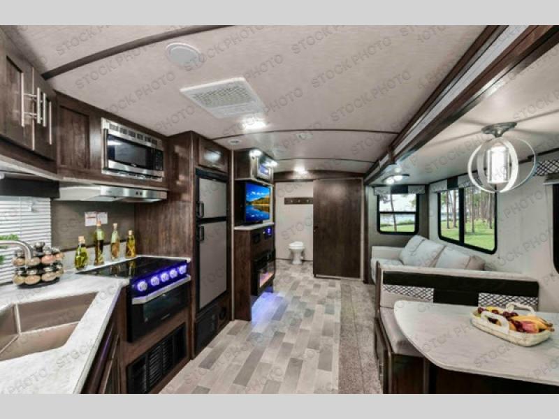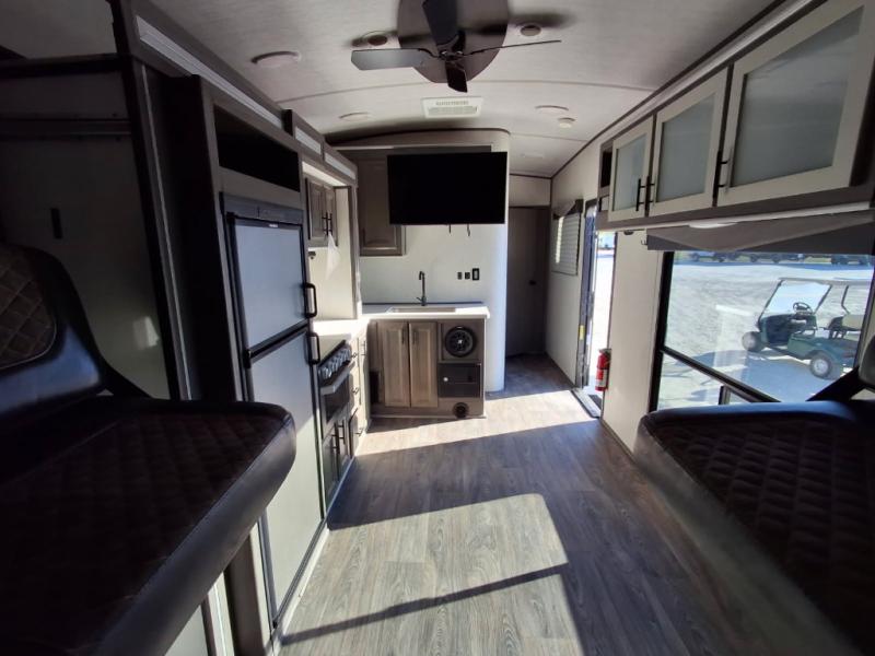 The Stryker toy hauler by Cruiser RV is all about family fun! With its functionality, design, and innovation, the Stryker was created with you in mind, and because the Stryker has a wide-body foundation, you will be able to bring along your biggest off-road toys. With deluxe additions like the residential furniture and designer accent walls, the interior portion of the Stryker is just as breathtaking as the high-gloss premium fiberglass exterior. The 30 gallon fuel station allows you to keep your toys ready to go when you are and each model is capable of fitting a four seat side-by-side so you can invite your buddies along for the ride!
