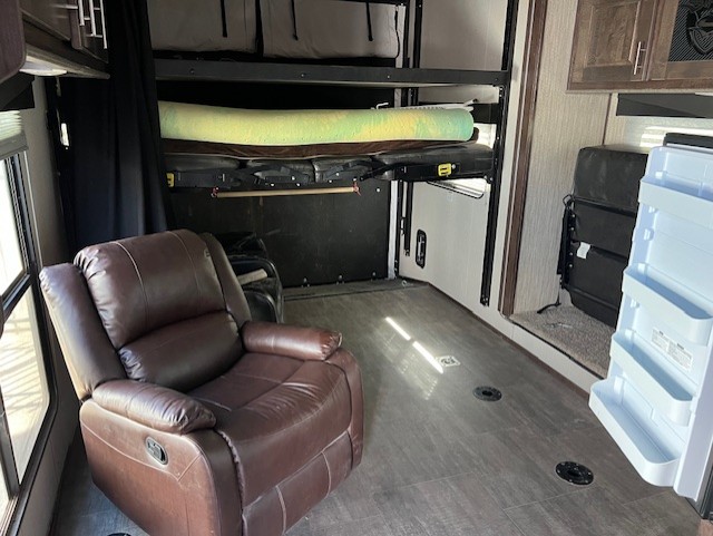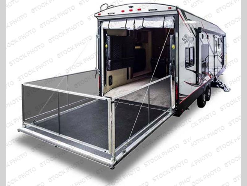 The Stryker toy hauler by Cruiser RV is all about family fun! With its functionality, design, and innovation, the Stryker was created with you in mind, and because the Stryker has a wide-body foundation, you will be able to bring along your biggest off-road toys. With deluxe additions like the residential furniture and designer accent walls, the interior portion of the Stryker is just as breathtaking as the high-gloss premium fiberglass exterior.