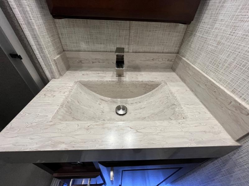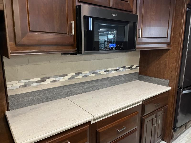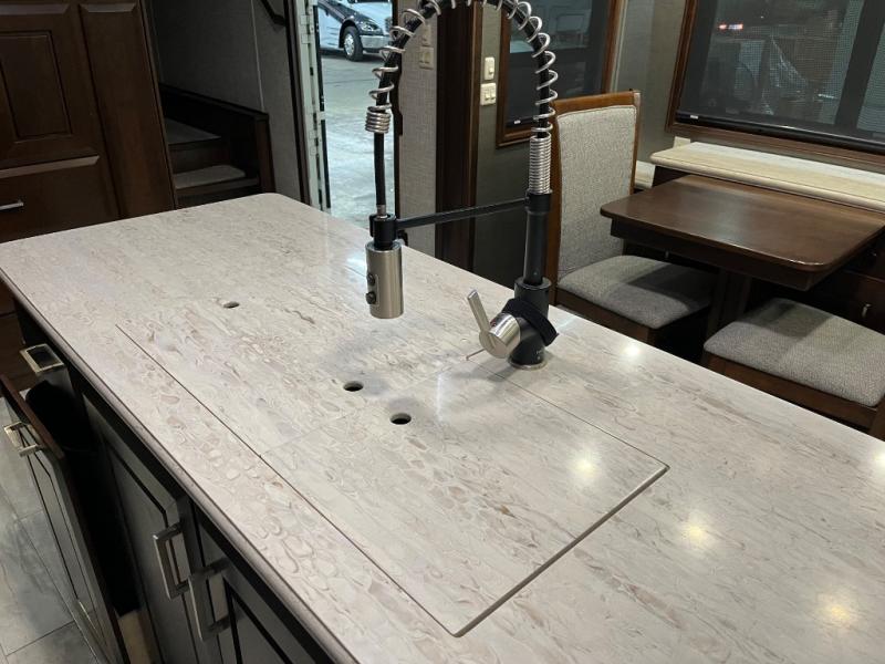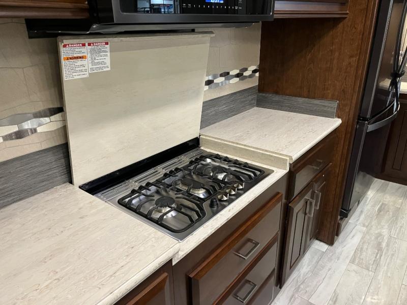 You will want the DRV Luxury Suites FullHouse toy hauler that is ready to go when you are! These models feature a high-gloss gel-coat fiberglass, as well as a custom enlarged control center with LED lighting. Once you step foot inside, be prepared to be wowed! You will enjoy the beautiful decor with the plush residential high-durability carpet and the Hazelnut, Latte, or Mocha Cherry solid hardwood cabinets. In the kitchen you will find high-polished solid-surface countertops and a deep double-bowl stainless steel sink with sink covers. When your next vacation is calling your name, answer the call with a FullHouse DRV Luxury Suites toy hauler!