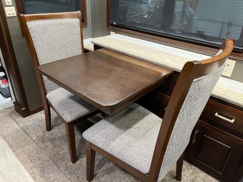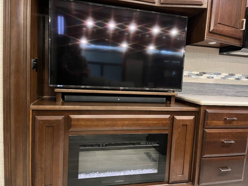 Enjoy luxurious living while you travel in this DRV Luxury Suites FullHouse toy hauler featuring a 10' garage! This unit offers four slides for added interior space plus a convenient dual entry. In the garage you will find plenty of room for a few off-road toys, and once your gear is unloaded, you can set up the dual couches and lower the Happijac bunk for additional sleeping space. Plus, there is a 49" LED HDTV in the garage for your entertainment. In the kitchen there is a large island and a free-standing table with two chairs for you to enjoy your delicious meals. At night you will want to head up the stairs to the private front bedroom where you will find a king bed, and if you choose to keep the night going, then head to the living area where you can relax in front of a cozy fireplace!
