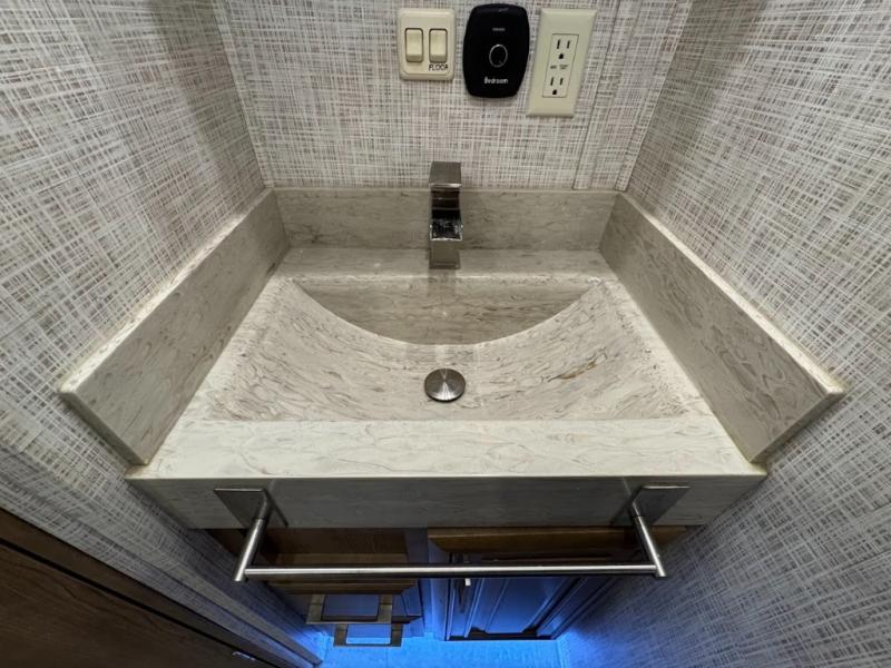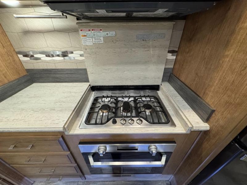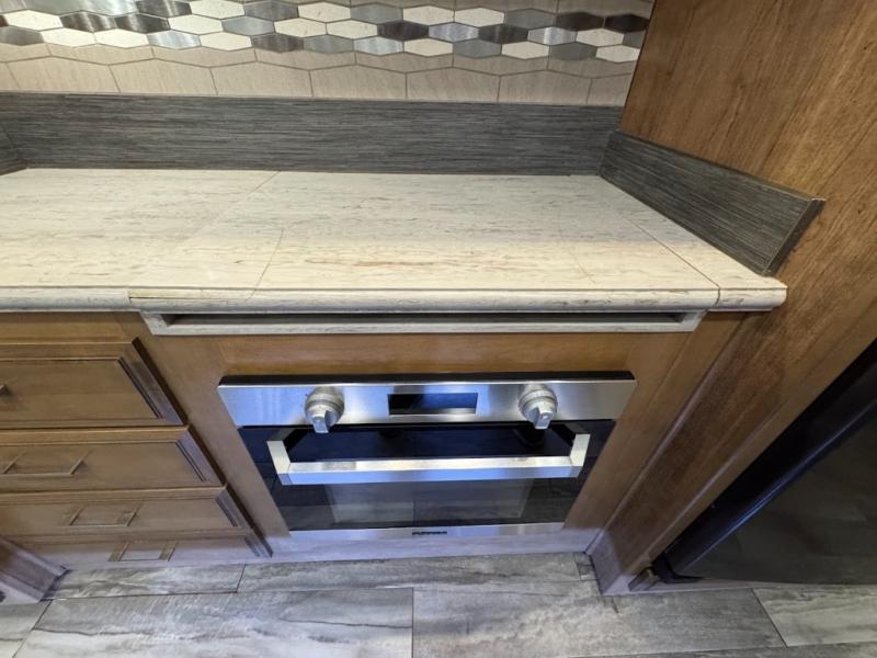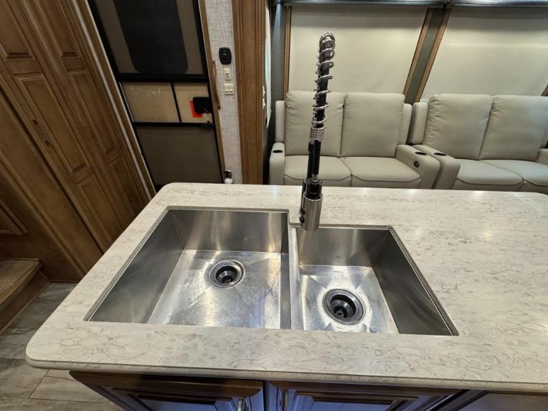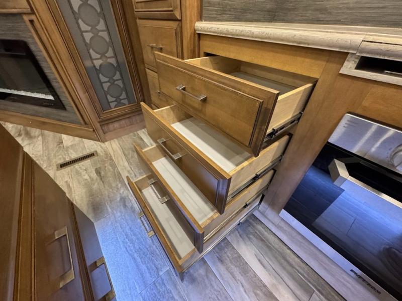You will want the DRV Luxury Suites FullHouse toy hauler that is ready to go when you are! These models feature a high-gloss gel-coat fiberglass, as well as a custom enlarged control center with LED lighting. Once you step foot inside, be prepared to be wowed! You will enjoy the beautiful decor with the plush residential high-durability carpet and the Hazelnut, Latte, or Mocha Cherry solid hardwood cabinets. In the kitchen you will find high-polished solid-surface countertops and a deep double-bowl stainless steel sink with sink covers. When your next vacation is calling your name, answer the call with a FullHouse DRV Luxury Suites toy hauler!
