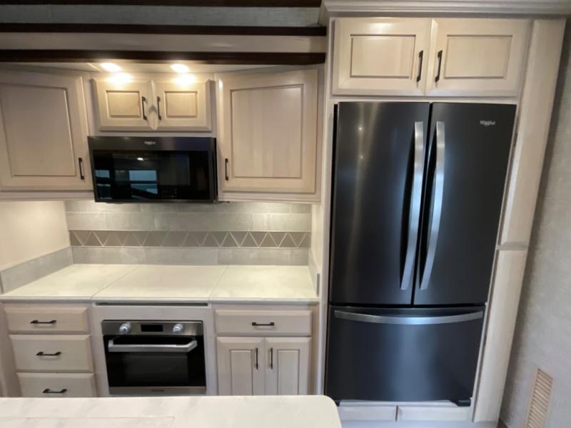 No matter where you travel or how you vacation, you won't be able to escape the luxury and elegance that you will find in one of these Mobile Suites fifth wheels. From its very foundation, the Mobile Suites has been crafted with DRV's custom-engineered 101" wide frame, which is the largest, most rigid fifth wheel frame in the industry. As for the interior, you won't be able to find a more extravagant unit than the Mobile Suites because each kitchen contains an impressive 20 cubic foot stainless steel French door refrigerator, and each private bedroom contains a king-size bed with an innerspring mattress. The beautiful crown molding that has been included throughout the interior will continue to impress you time after time, and the 8' tall slides will not only add elegance to the entire unit, but will also provide exceptional functionality as you go about your daily routines.