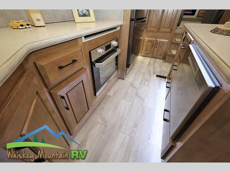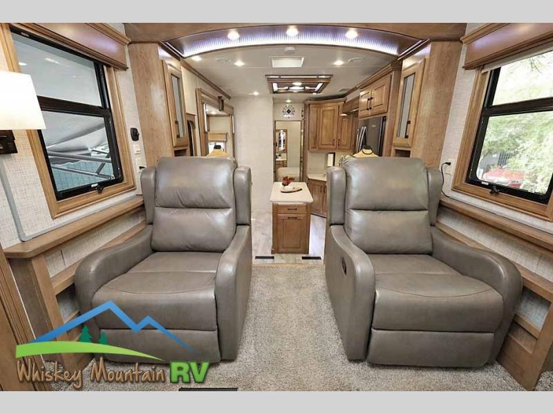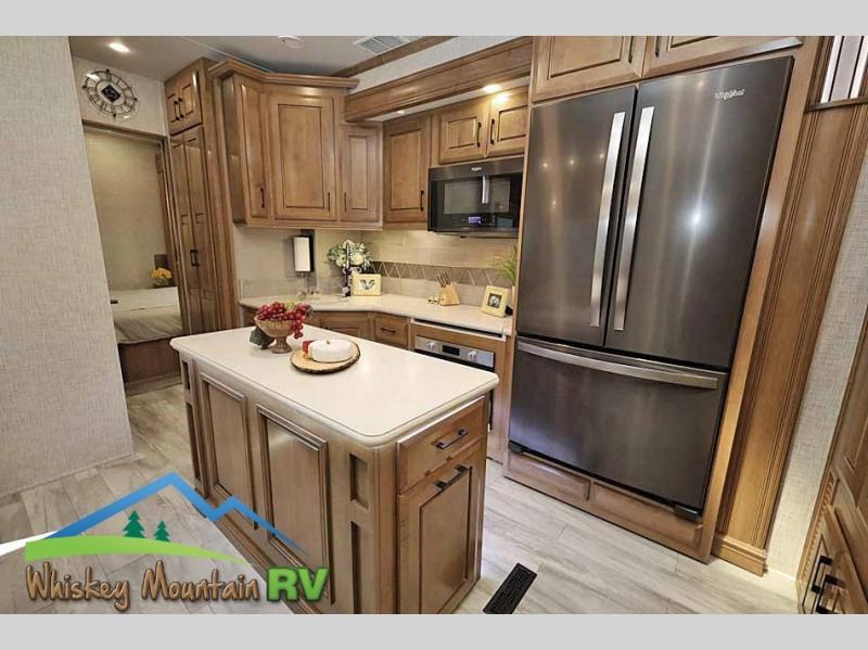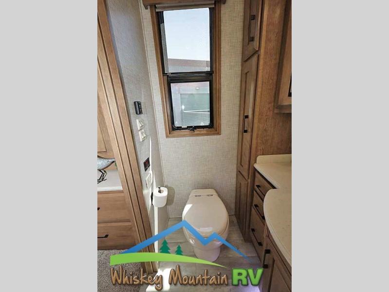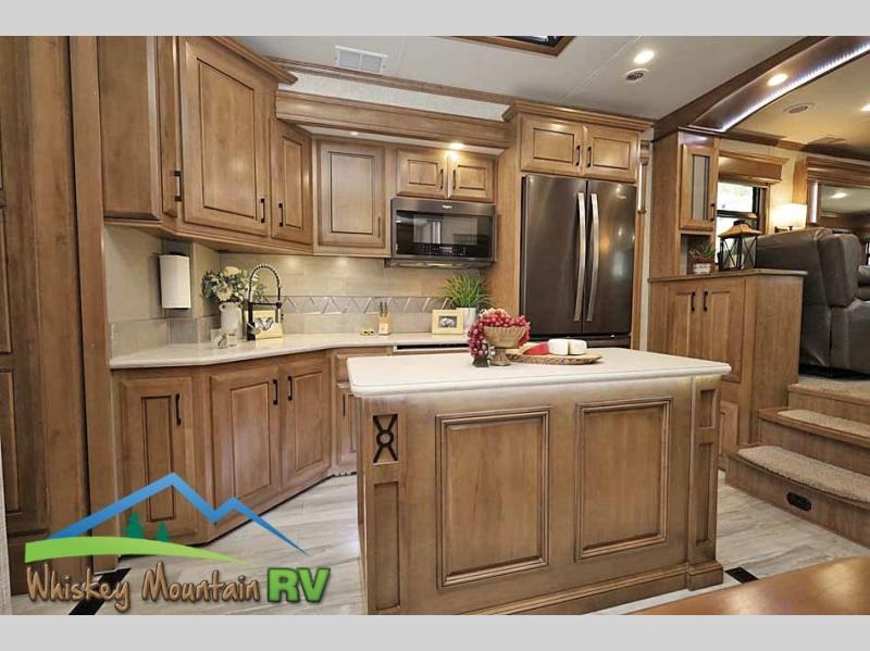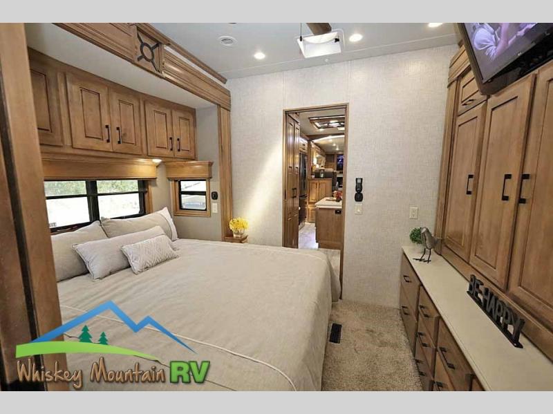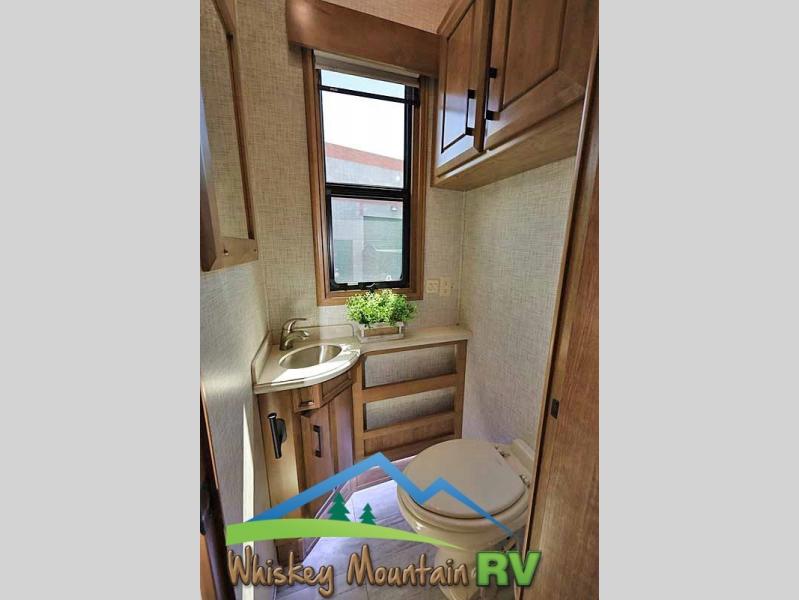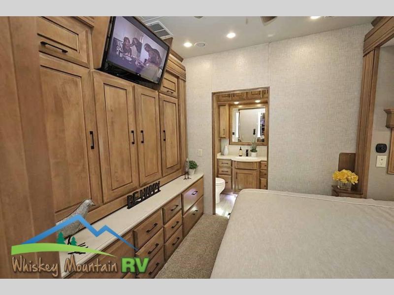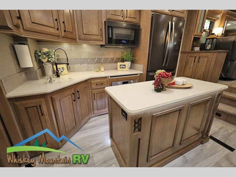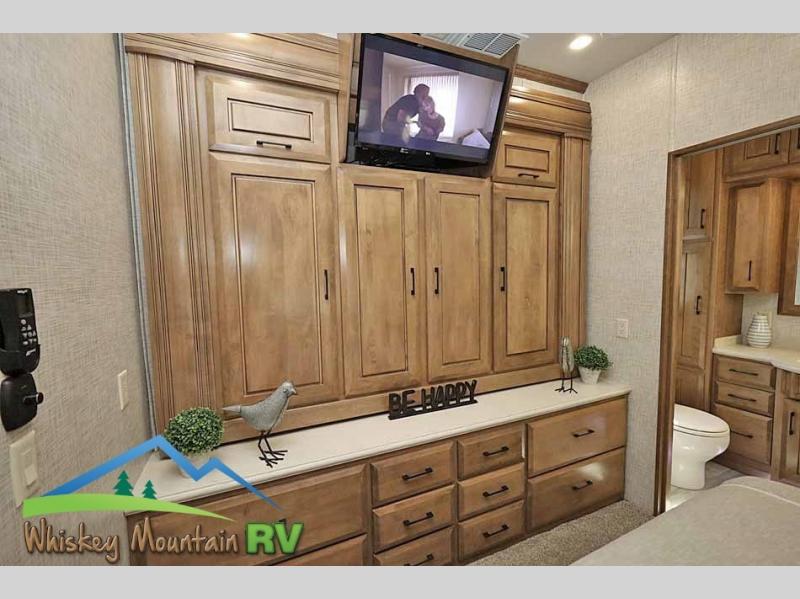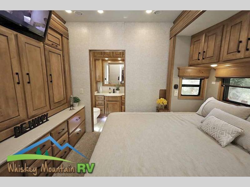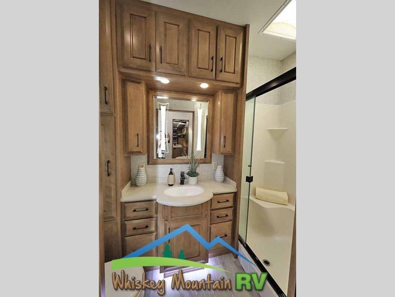 DRV'S NASHVILLE IS A RELATIVELY RARE AND A VERY DESIRABLE FLOOR PLAN WITH A HUGE FRONT LIVINGROOM THAT SITS 6, SLEEPS 4, A SEPARATE KITCHEN, WASHER / DRYER HALLWAY CABINET, HALLWAY HALF BATH, HUGE KING BED BEDROOM WITH A CEILING FAN AND REAR ENSUITE BOTH WITH AN 8' CEILING.