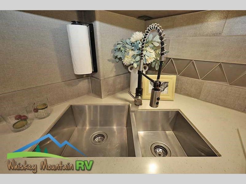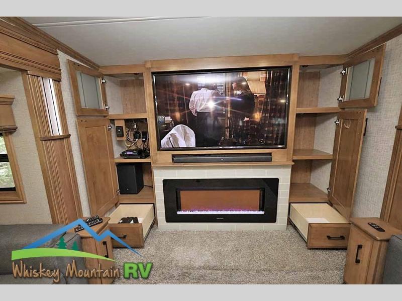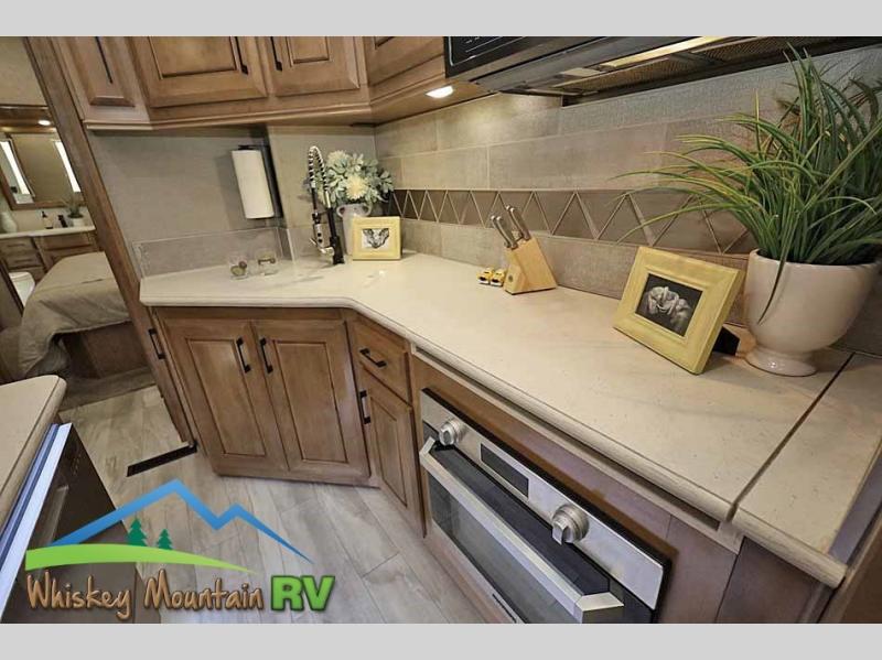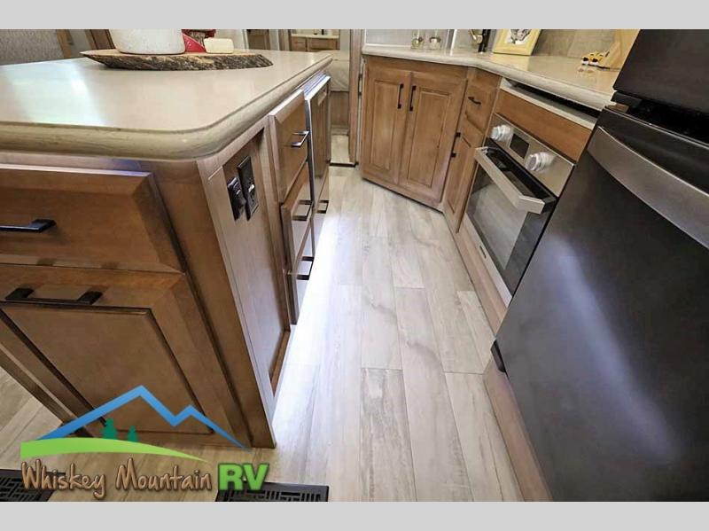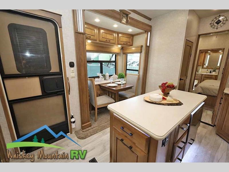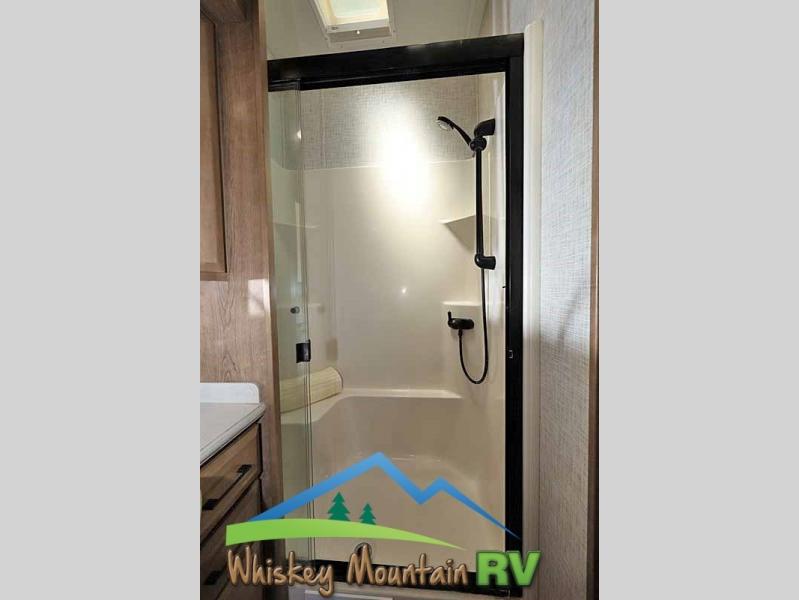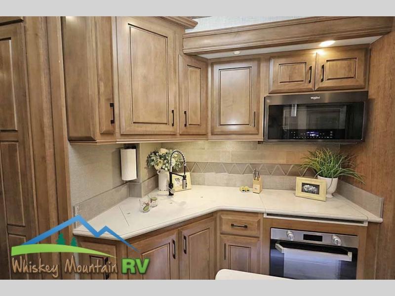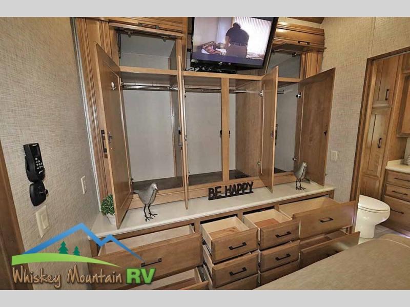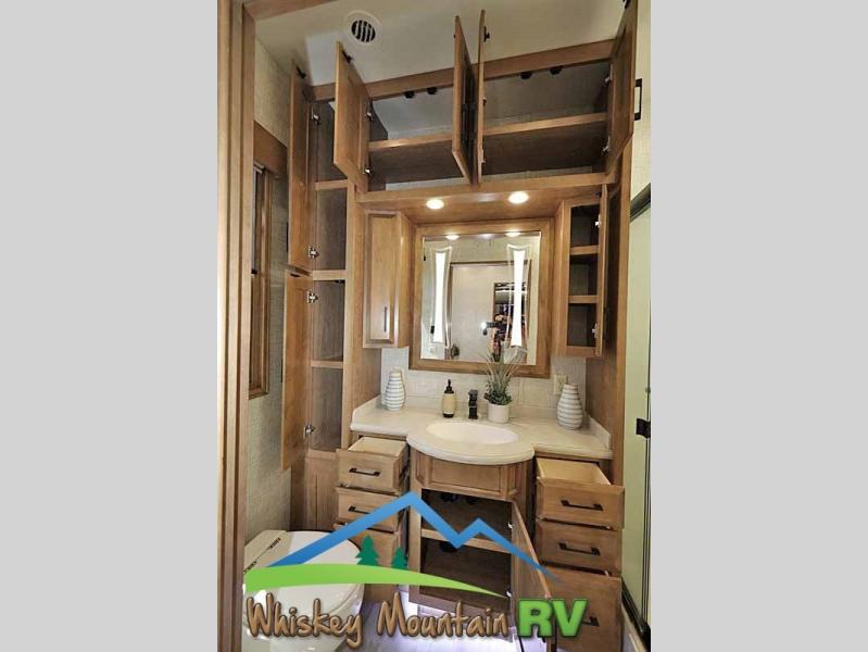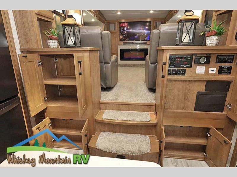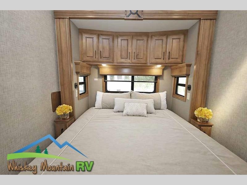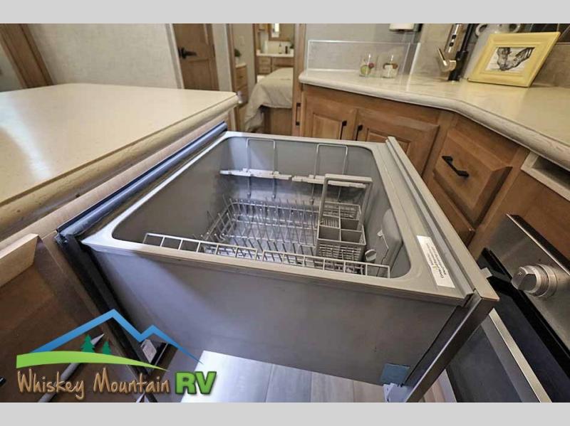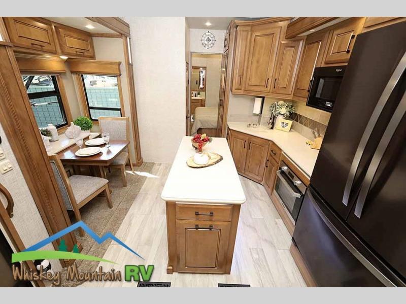 DRV'S NASHVILLE IS A RELATIVELY RARE AND A VERY DESIRABLE FLOOR PLAN WITH A HUGE FRONT LIVINGROOM THAT SITS 6, SLEEPS 4, A SEPARATE KITCHEN, WASHER / DRYER HALLWAY CABINET, HALLWAY HALF BATH, HUGE KING BED BEDROOM WITH A CEILING FAN AND REAR ENSUITE BOTH WITH AN 8' CEILING.