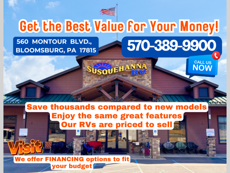 Looking for the perfect used RV, travel trailer, or camper near Bloomsburg, PA? At Susquehanna RV, we take pride in offering top-quality, pre-owned RVs that meet the highest industry standards. We have an extensive selection to fit your needs and budget.