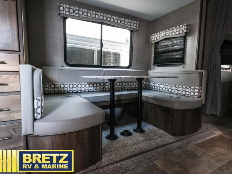 REAR CORNER BATHROOM ~ U-SHAPED DINETTE & QUEEN BED~OPTIONS LISTED BY MANUFACTURER , ACTUAL OPTIONS MAY VARY~