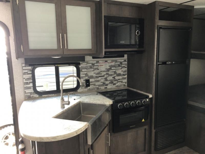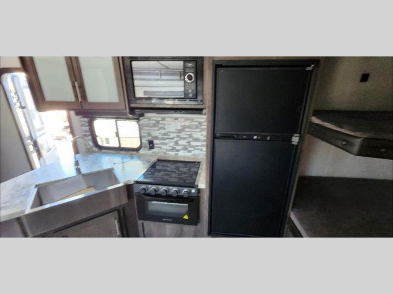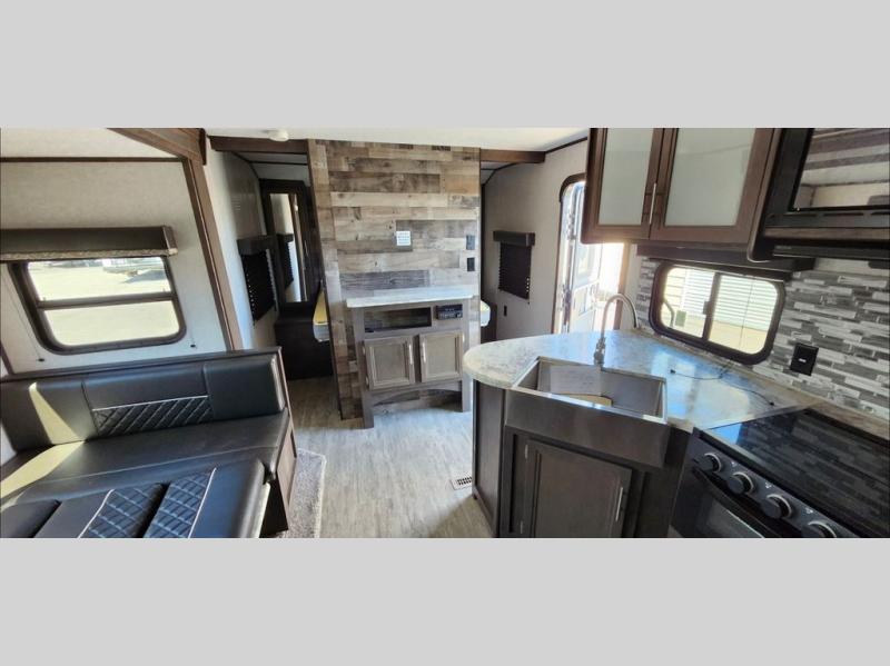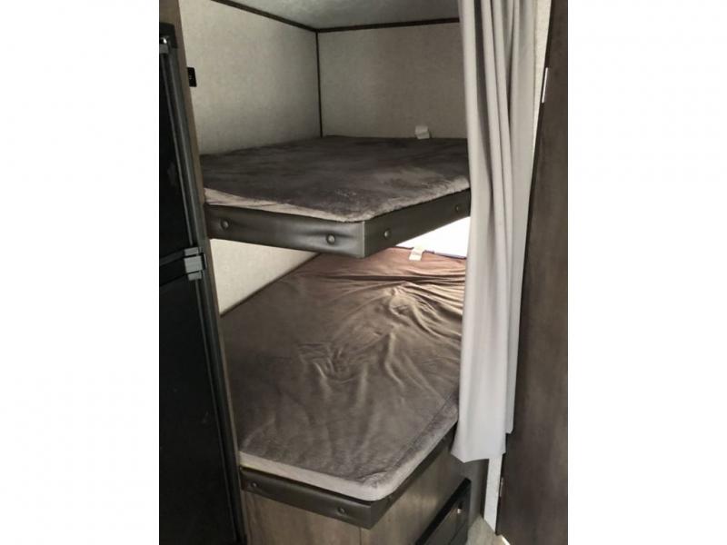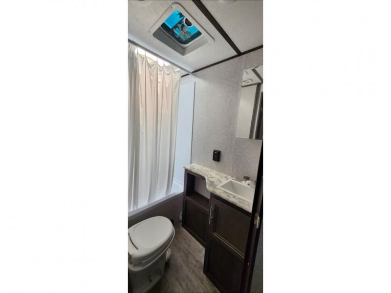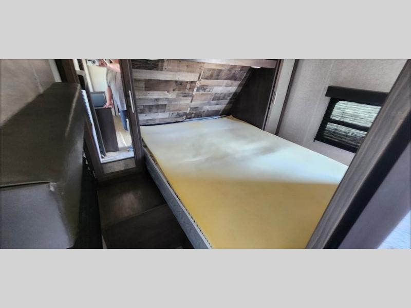 Bring the whole family and start camping in this Aspen Trail travel trailer today! There is a rear set of double-size bunks that your kiddos are sure to love, and you will love how convenient it will be for your kids to access the full bathroom because it is located right next to the bunks. The three-burner range with oven and the seamless thermofoil countertops are ready whenever you are to whip up your best meals. The single slide creates more walking space by moving the U-shaped dinette and pantry out of the way of the main living space. The front private bedroom features a queen-size bed for you to rest up each night and be ready for your next adventurous day!
