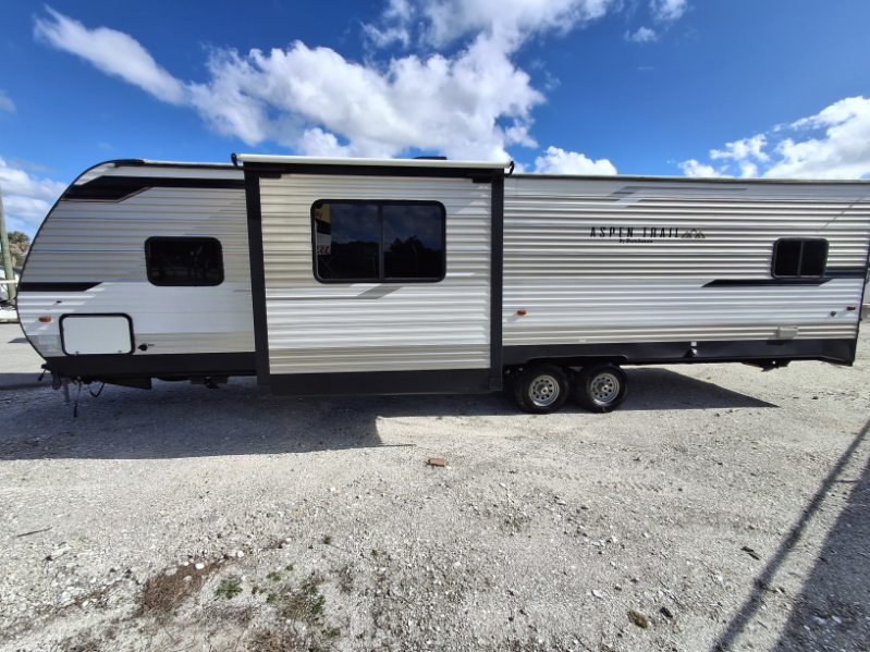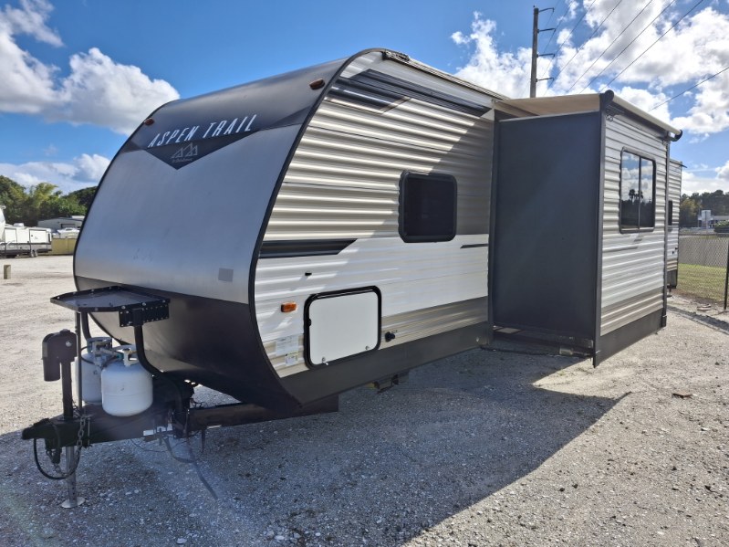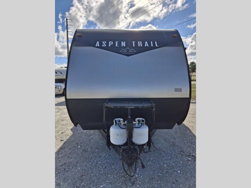 Each Aspen Trail travel trailer and toy hauler by Dutchmen RV is ready to hit the road anytime of year thanks to the heated and enclosed underbelly keeping all of its vital components protected from the elements! These units are packed with standard features that will make your camping trips better and easier, from the seamless thermofoil countertops to the exterior mega pass-through storage compartment with LED lighting. Everyone will enjoy themselves, even your tallest member, thanks to the 82" interior height and the 72" slide out height. The Aspen Trail Upgrade Package comes standard on every model and includes luxurious features like a queen Everdream mattress, a Bluetooth stereo with CD/Aux, and upgraded Beauflor linoleum throughout. So what are you waiting for? Come choose the Dutchmen RV Aspen Trail model that best suits you!