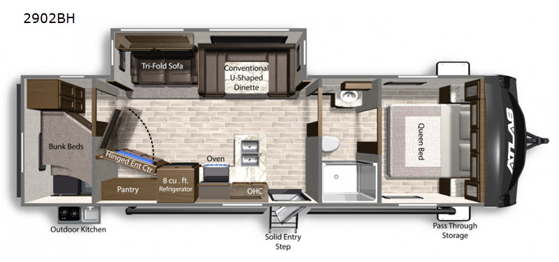 Dutchmen Atlas travel trailer 2902BH highlights: