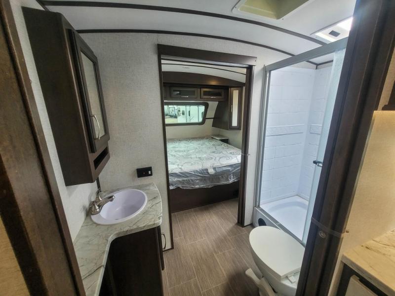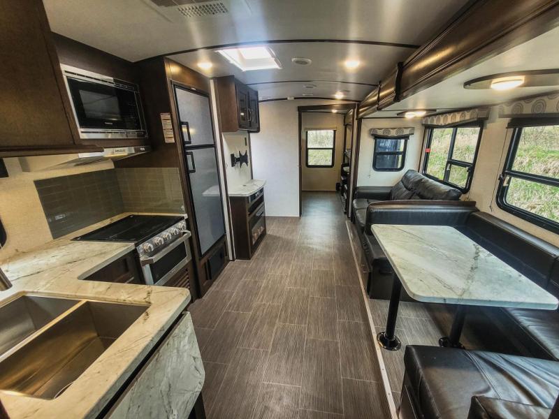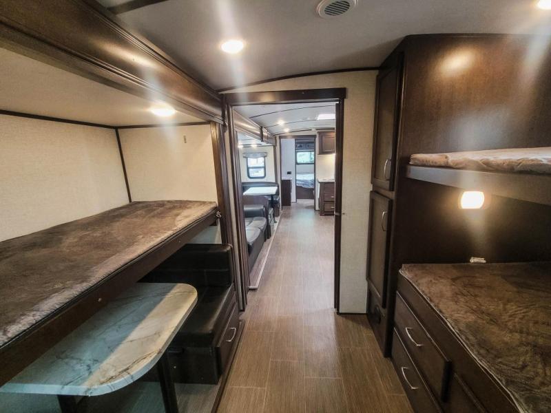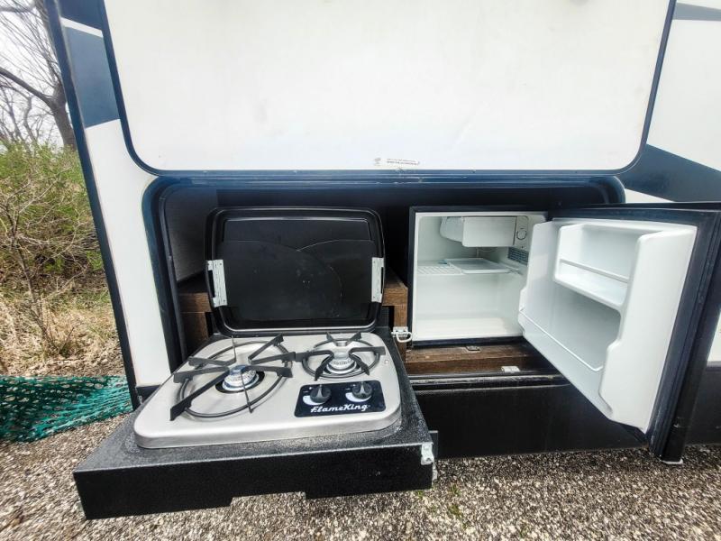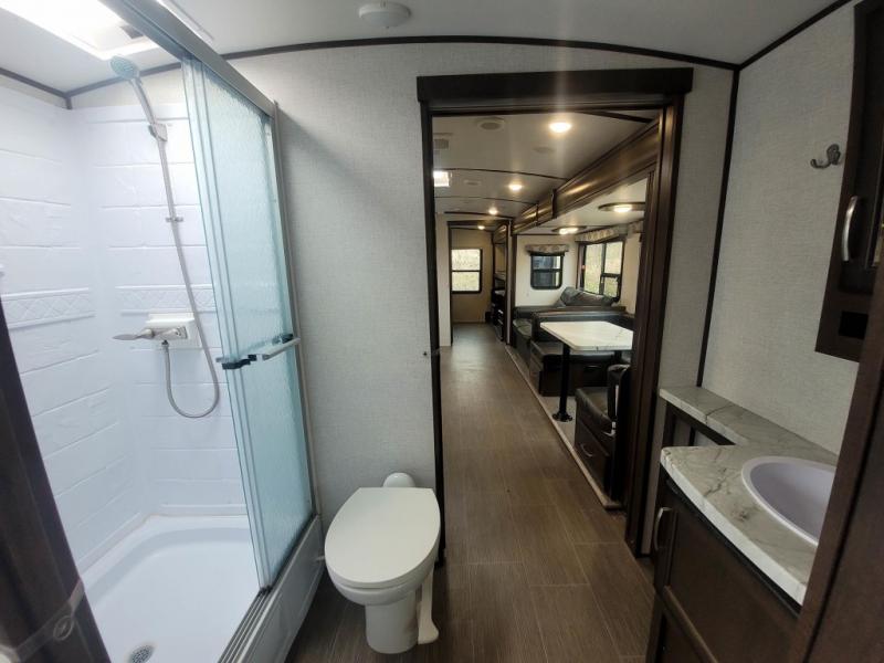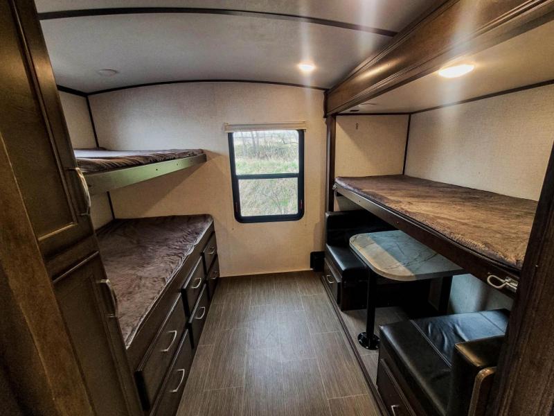 If you like to take outdoor adventures in style, then you'll certainly want to upgrade to this gorgeous Atlas travel trailer! Let the kids have their own play space with the private bunkhouse in the back and claim the king-size bed in the front private bedroom for yourself. Since the walk-through bath has doors on either side, you can even head discreetly into the shower in the morning from the bedroom. Plus, the bedroom also has the second exterior entry door so that you can come and go as you please. The large slide in the main living area has a tri-fold sofa and U-shaped dinette so that there is plenty of space for all of you to come together for a movie night on the LED HDTV.