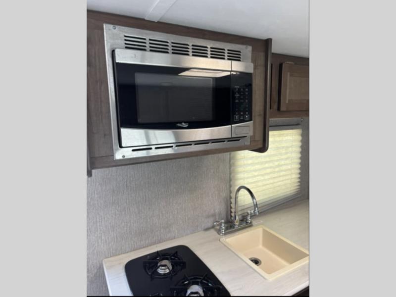 If you enjoy the great outdoors and like to stay until the next morning to do it all over again, take a look inside this Coleman Lantern LT travel trailer. You can make dinner on the two-burner cooktop, store leftovers in the refrigerator, get cleaned up in the rear full bathroom, and sleep on your own walk-around residential queen bed. You will also find ample storage space, and as you step inside, you will find more features to love on your next trip.