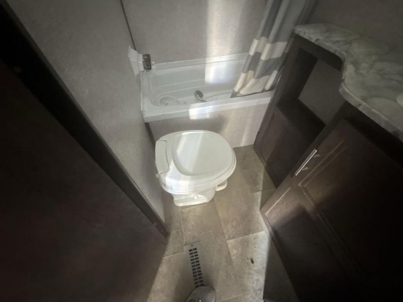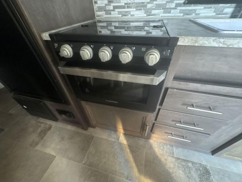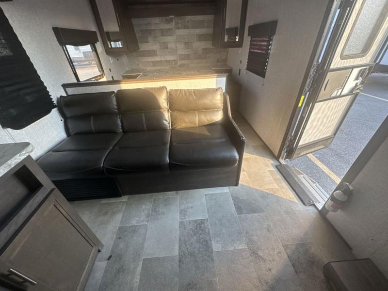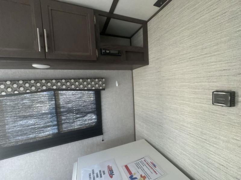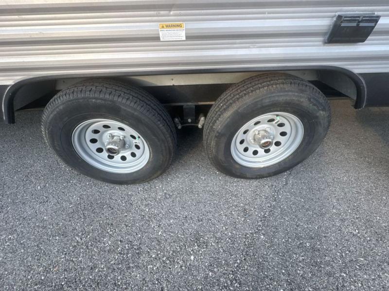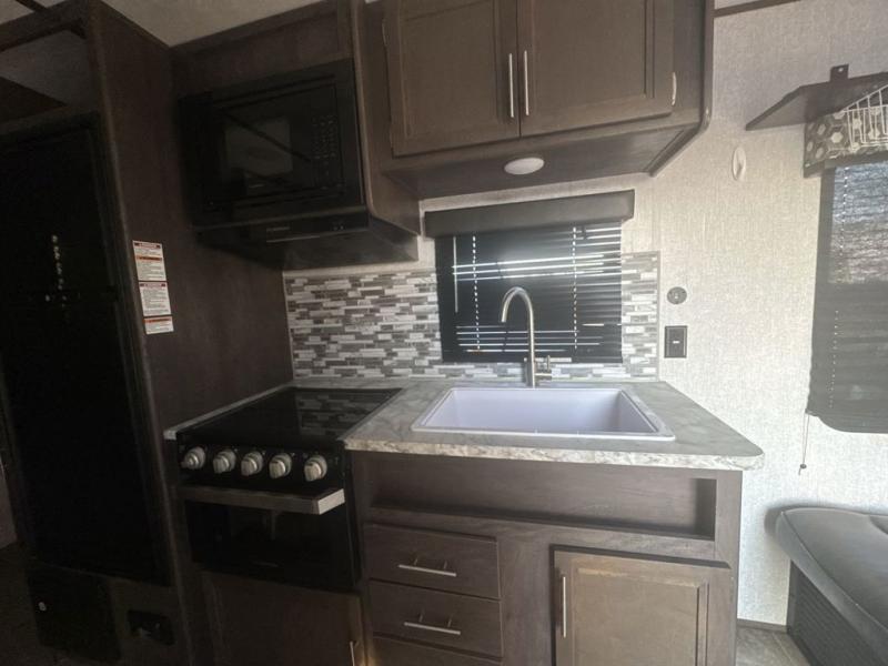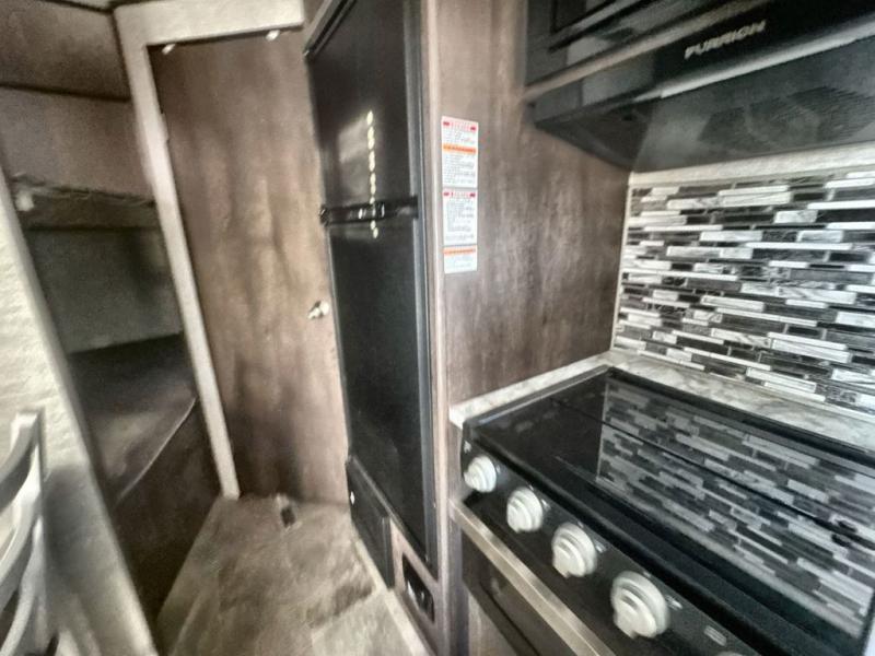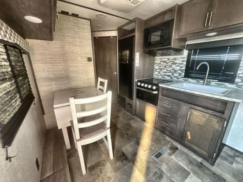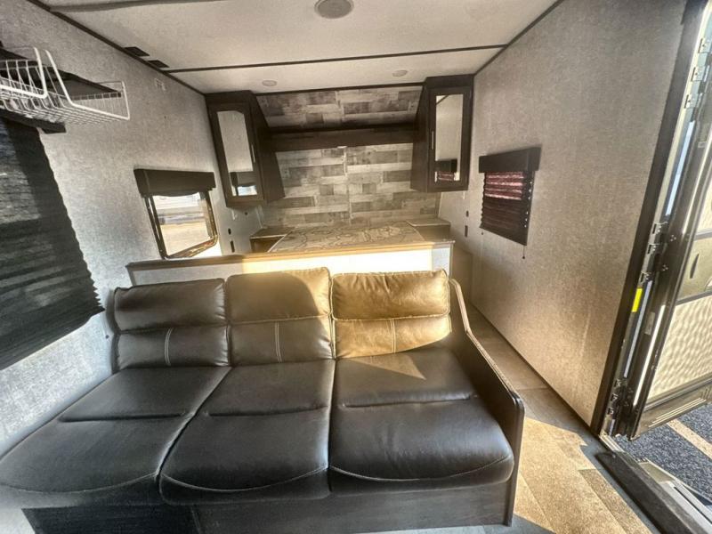 Don't let memorable and adventurous getaways pass you by! Grab this Coleman Lantern LT Series travel trailer and set out on your next great expedition. The full rear bathroom with its skylight will come in handy for your morning routines, and the full kitchen will give you an opportunity to make warm meals for the group. You will be amazed by the amount of sleeping choices this trailer has, enough to sleep eight to nine people comfortably. The bunks will be the kids favorite, and the walk-around residential queen bed will be a nice oasis at night, plus the furniture doubles as sleeping space.