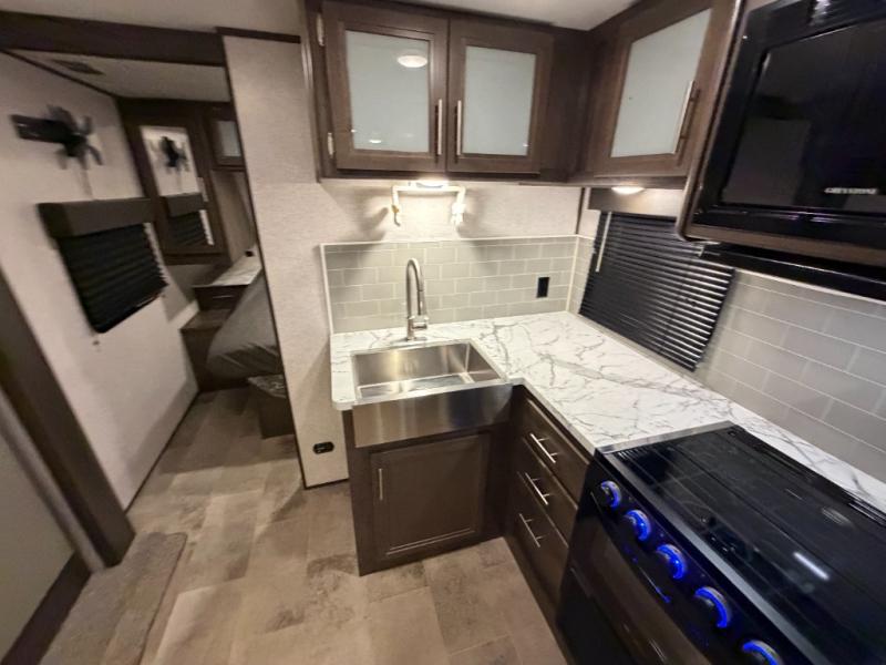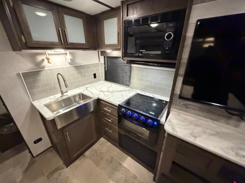 The Dutchmen Coleman Light travel trailers are for campers that want a durable, four-seasons RV with an enclosed and insulated underbelly, power stabilizer jacks, and an outside shower with hot and cold water connections. You'll enjoy features such as a power awning with an LED patio light, a solar charging connection, and preparations for a back-up camera. These units also include stainless steel appliances, Everwear Luxury furniture, a large kitchen sink, plus under-the-bed storage for extra blankets and board games. Choose your favorite layout today!