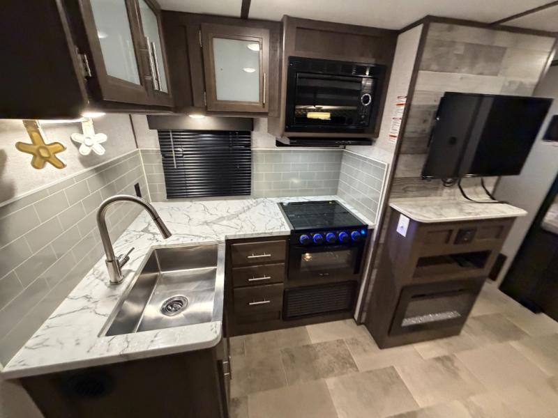 Focus on the fun you'll have with this Coleman Light travel trailer! Take the family or a group of friends out to your favorite campsite and show them a good time with all of the many helpful features found throughout this model, like the full bathroom with a mirrored medicine cabinet, the walk-in closet next to the main entry, the full kitchen with a microwave, and the front private bedroom with a queen Rest Easy mattress. Since this unit comes with a set of double-size bunks, you can easily bring along the whole crew, and with the extra amenities found at the outdoor kitchen, it will be such a snap to get meals ready for everyone.