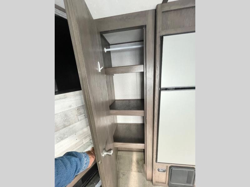 The Dutchmen Coleman Light travel trailers are for campers that want a durable, four-seasons RV with an enclosed and insulated underbelly, power stabilizer jacks, and an outside shower with hot and cold water connections. You'll enjoy features such as a power awning with an LED patio light, a solar charging connection, and preparations for a back-up camera. These units also include stainless steel appliances, Everwear Luxury furniture, a large kitchen sink, plus under-the-bed storage for extra blankets and board games. Choose your favorite layout today!