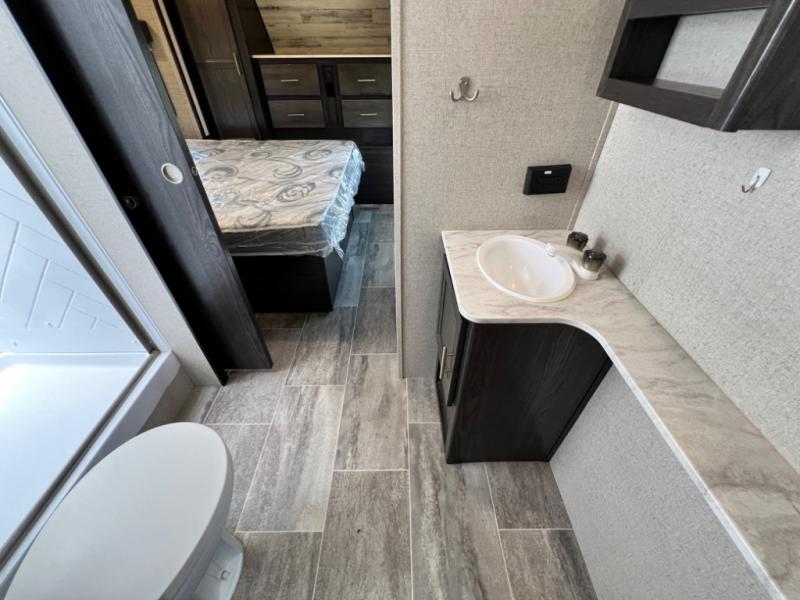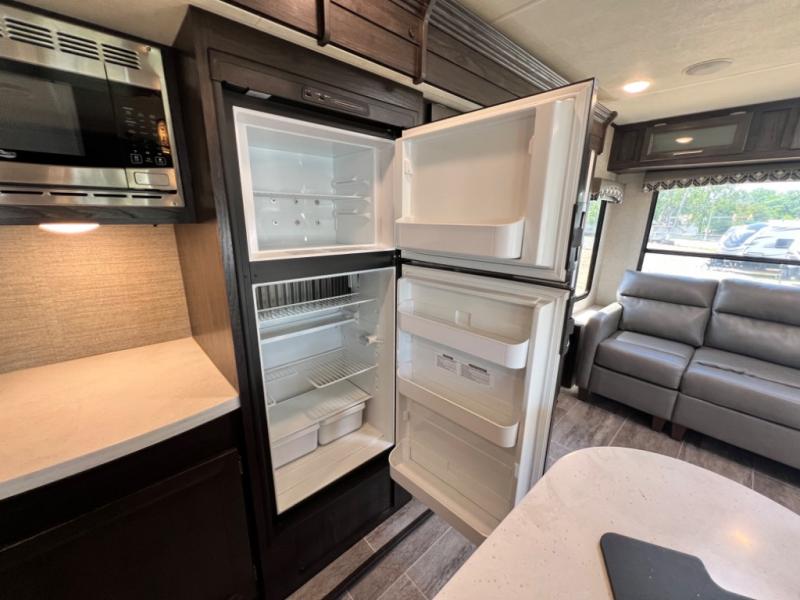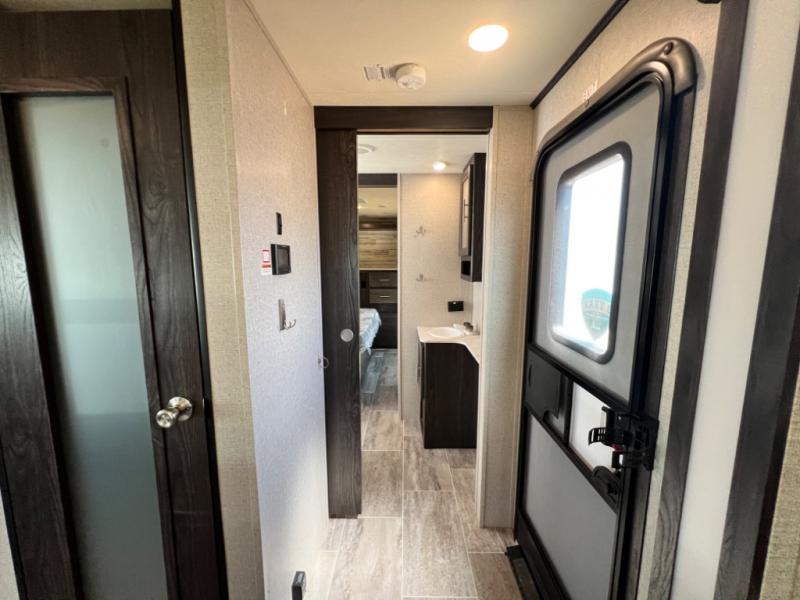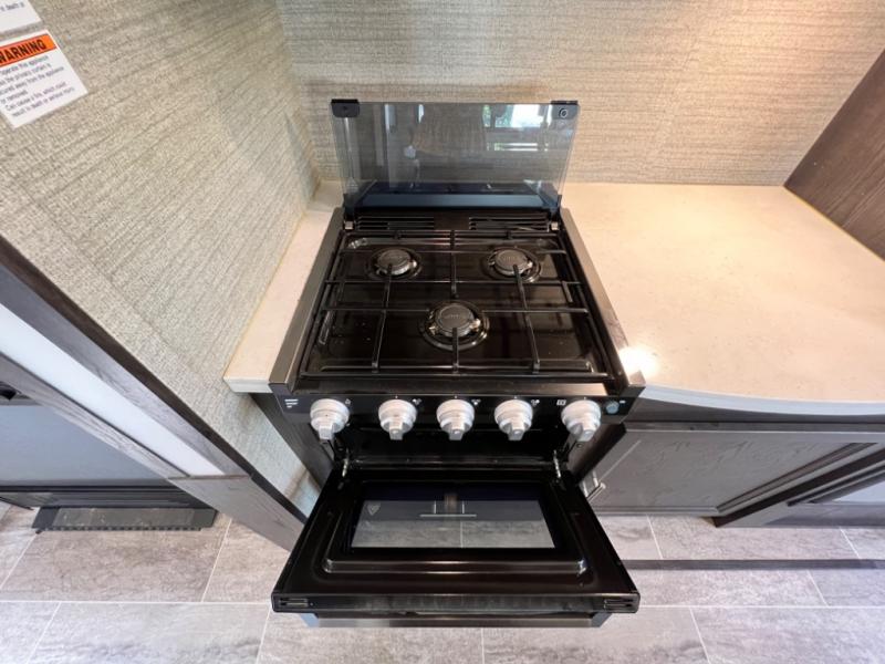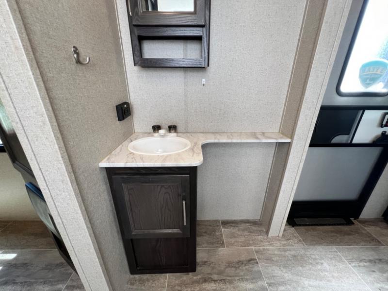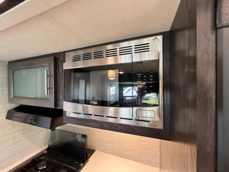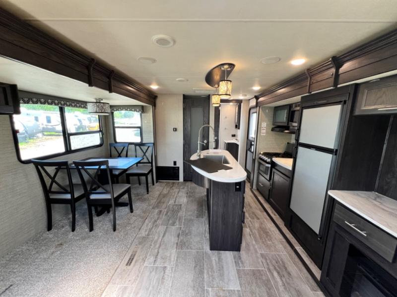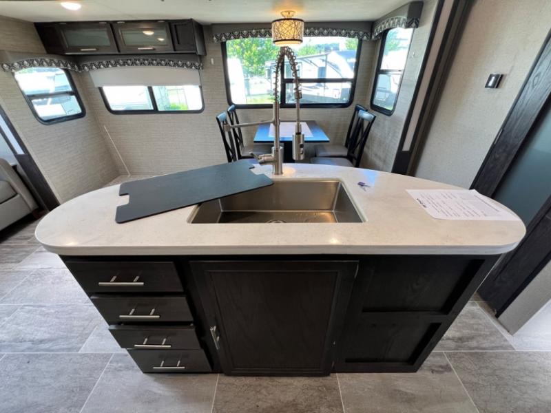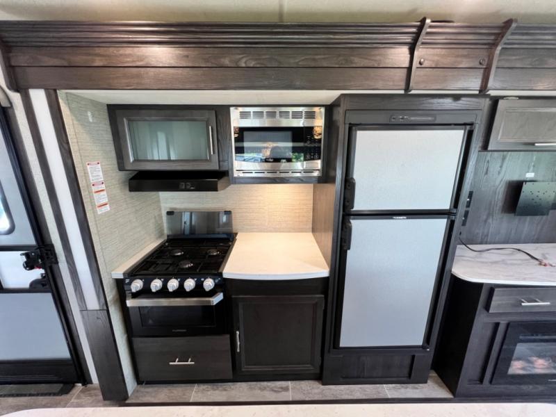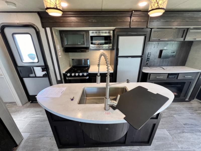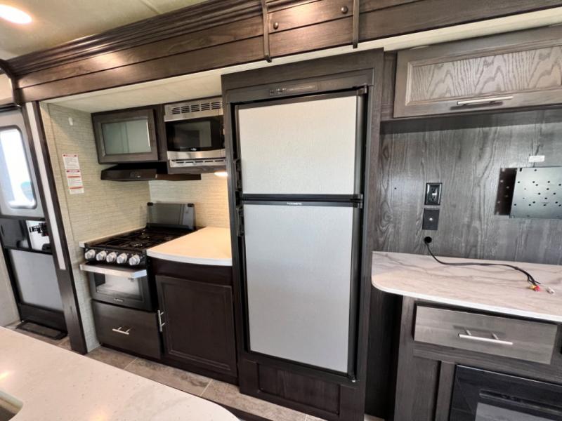 With every Kodiak Ultimate travel trailer by Dutchmen RV you will enjoy the iN-Command System, which allows you to control all of your essential features with the touch of a button. Use the In-Command phone app to control the awnings, lights, slide-outs, tank level, and much more! Inside, stainless steel appliances give the kitchen a luxurious feel, plus each unit includes a 6 cu.ft. double door refrigerator, and solid surface countertops with LED backlighting. The gel coat high gloss fiberglass exterior provides a strong, yet lightweight structure, and the power tongue jack with a docking lights allows you to easily hitch up and go!
