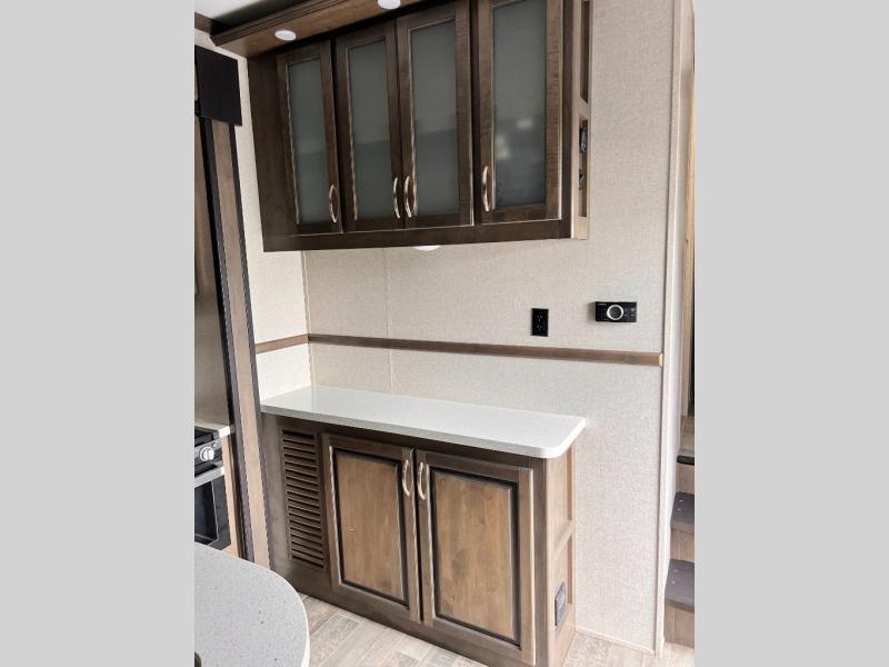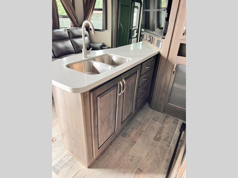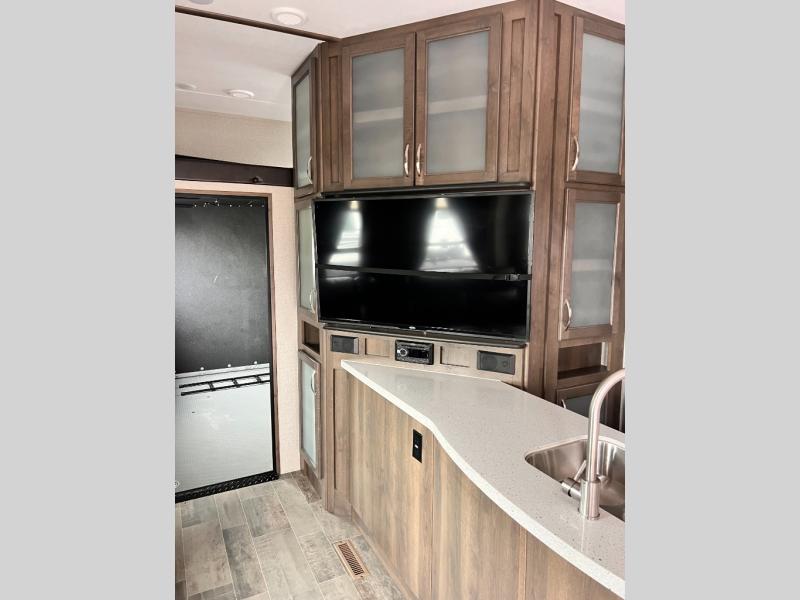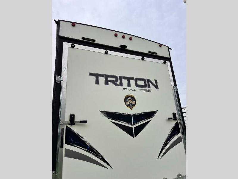 With any Voltage Triton toy hauler by Dutchmen RV, you will enjoy the luxurious interior, as well as the fabulous garage features that include a spring-assist ramp door, a 30-gallon fuel station to keep your toys fueled all weekend long, Tuff Ply flooring for durability, and 2,500-LB tie downs to secure your toys while on the go. Inside each model you will find a 50" TV, upgraded residential furniture, solid-surface countertops, and a stainless steel kitchen sink. It's time to stop dreaming about adventure and luxury and start living it!