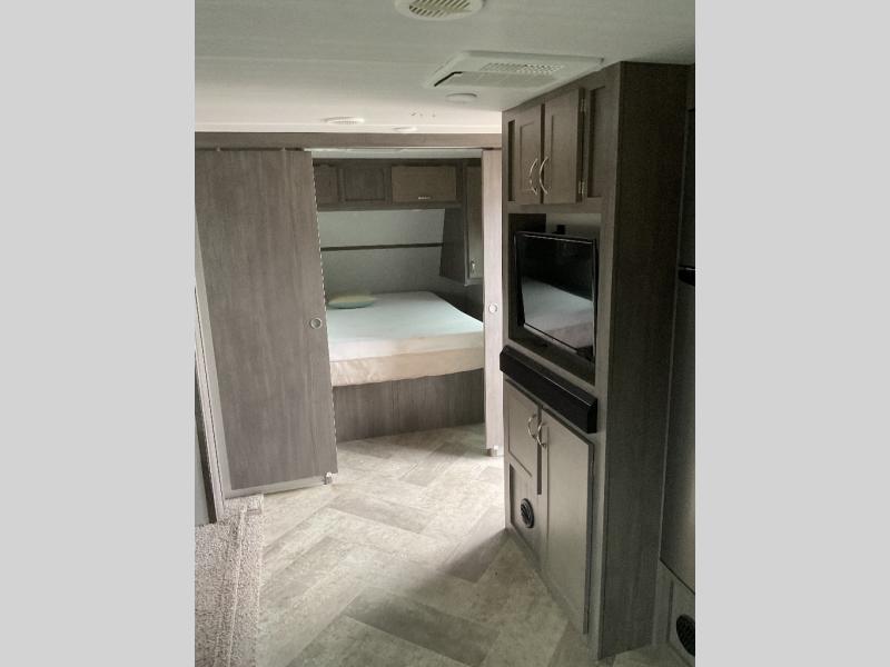 If you've been looking for a trailer with ample space that allows you to invite the whole family along, look no further than this Alta travel trailer. Beginning with having two entry doors with one entrance leading into the kitchen/living area and the other exterior entry leading into the bath for convenience. There is also a hallway with coat hooks just as you exit the bath where the kids can place their jackets and things. The rear bunkhouse will be great for all the kids, and since it includes a slide out, they'll have extra floor space to play indoors. The inside kitchen amenities will allow the cook to prepare and make any meal, plus the outside kitchen allows the outdoor chef to help with side dishes and such.
