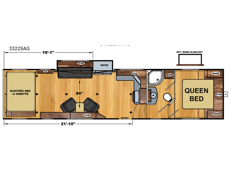 After your off-road toys such as a four wheeler and a motorcycle have traveled safely to your destination, unloaded them from the 19'1' to 21'10" of cargo space then lower the electric bed and dinette to get set up for a fun weekend on the trails. As you wait your turn for outdoor fun, you can watch the 50" TV while sitting on the sofa, the dinette, and the two lounge chairs. The cook will enjoy the L-shaped kitchen providing them their own space without having to squeeze in or move for the riders coming and going. The dual entry bathroom allows easy access from the hallway and bedroom. If you would like more storage, be sure to add the optional wardrobe slide in the front bedroom before leaving the dealership. This is the one!