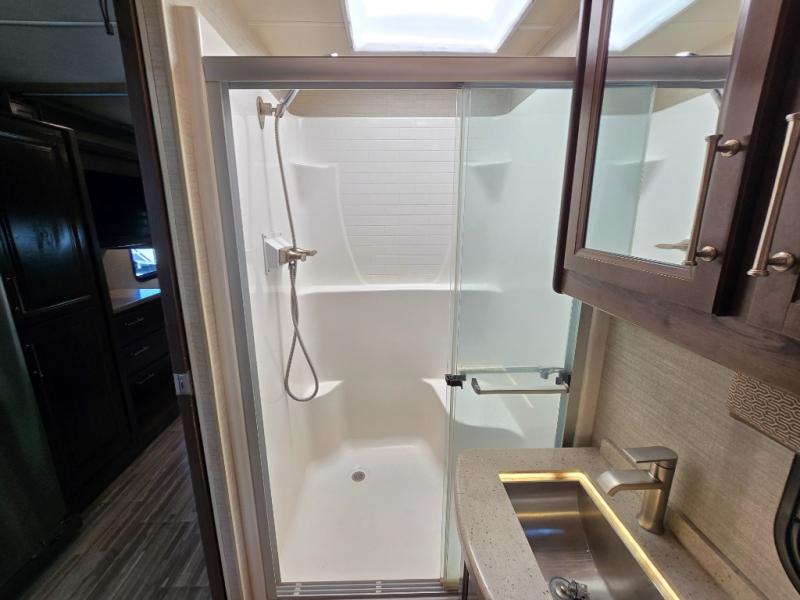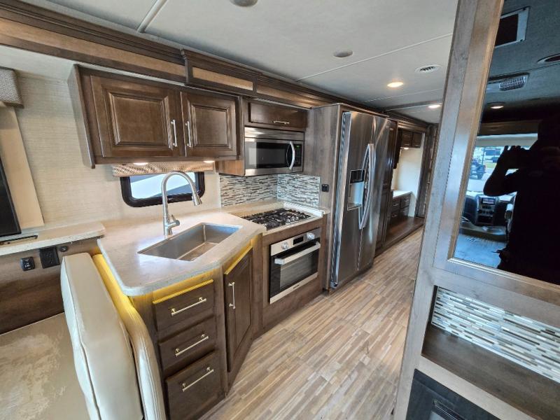 Any Entegra Coach Emblem Class A gas motorhome will provide you with the luxurious lifestyle that you have been dreaming of. Each unit features a one-piece fiberglass front cap with a 120" panoramic windshield allowing you to have a great view as you travel. Bead-foam insulation (R-24 max roof, R-9 max floor, R-8 max walls), high-gloss, gel-coat fiberglass walls, and a seamless, crowned fiberglass roof provide all the protection you need from the elements keeping you comfortable in any type of weather. Inside, you'll enjoy solid-surface countertops throughout, a 7' ceiling for added space, linoleum flooring in the cockpit, a Sony in-dash radio with GPS, plus so much more!
