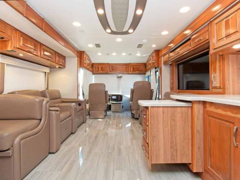 Step inside and be greeted by hand-laid polished porcelain tile flooring and Flexsteel® furniture designed for comfort and style. Control your environment effortlessly with the 7" VegaTouch coach systems panel.