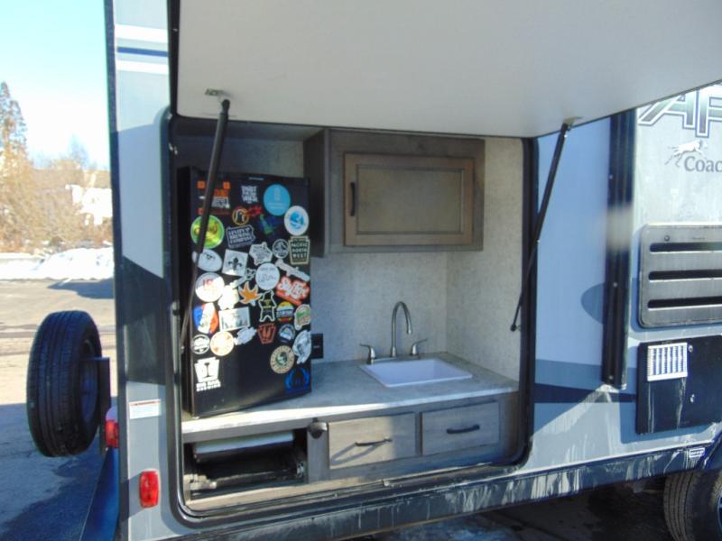 Each Apex Ultra-Lite travel trailer and toy hauler by Coachmen is easily towable, yet packed with comfortable features to make your camping experience great. These units feature LED lighting throughout, an interior convenience center, and a stainless steel microwave to make it feel more like home. You'll love the LED motion light in the exterior storage area and the hot/cold outside shower allows you to wash off your hiking boots and easily fill the dog's water bowl. Each model also includes an LED TV, an AM/FM/CD/DVD stereo with Bluetooth, and a USB charging station so you can still enjoy some entertainment and stay connected!