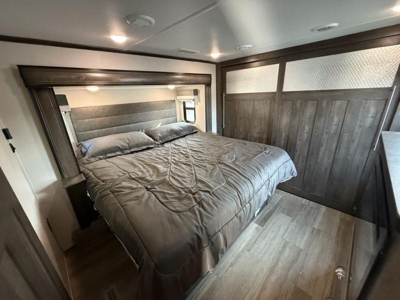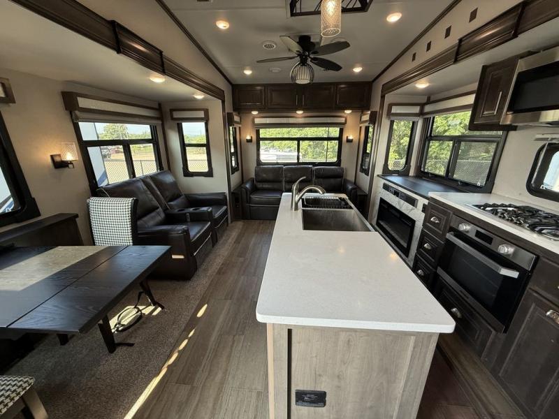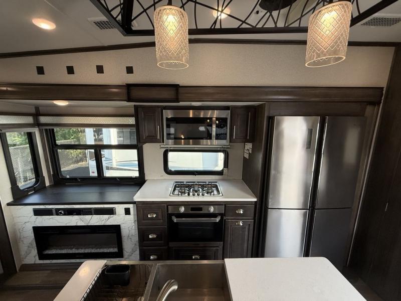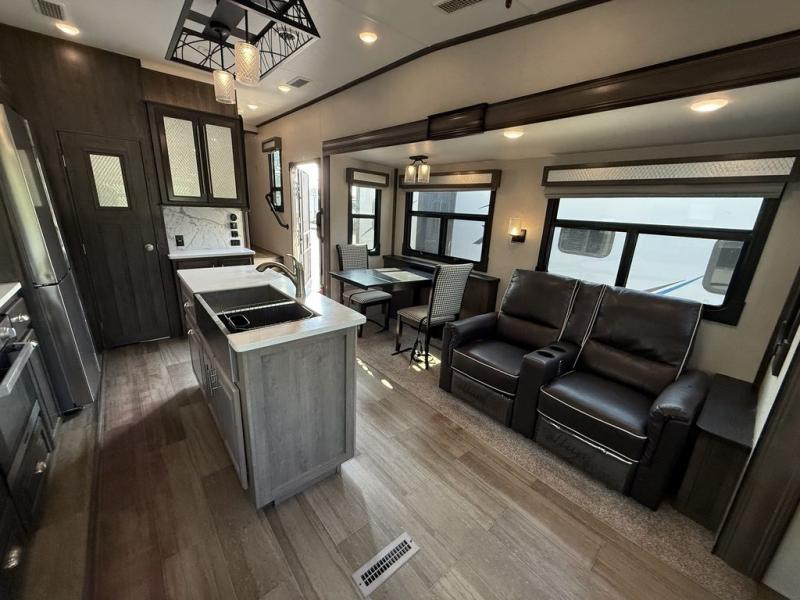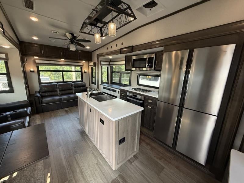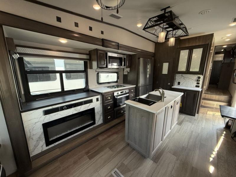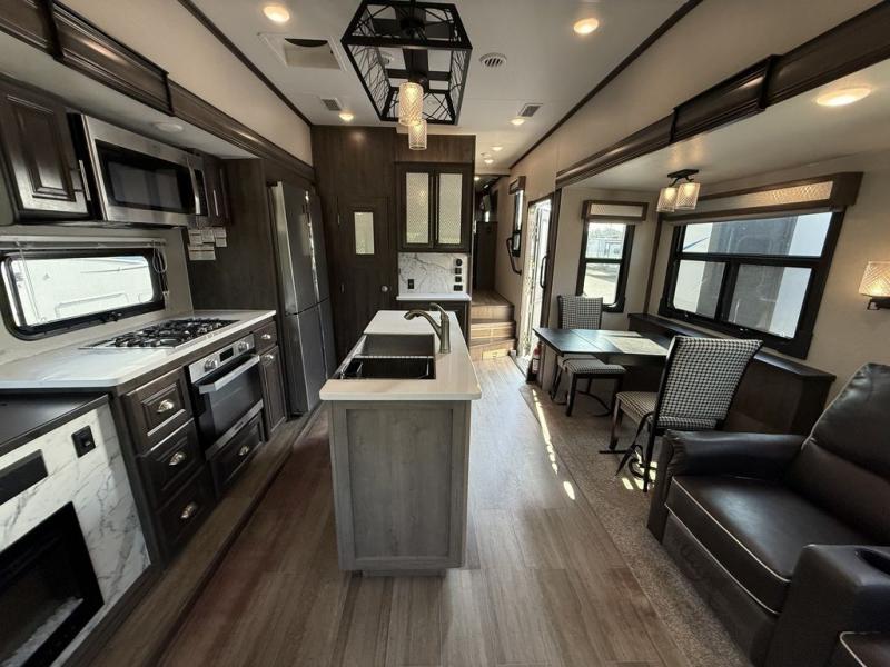 In any Forest River Cardinal Luxury fifth wheel, you will find comfort and convenience both inside and out as these units were built with your enjoyment in mind. Each unit features a vacuum-bonded, welded aluminum structure and includes a “Level Up” 6-point one-touch automatic hydraulic leveling system. Each Cardinal Luxury model also has chambered frame technology and a hydraulic slide system with 2.5" steel rams. You will also appreciate the at-home touches on the interior that give each unit a luxurious feel like the crown molding ceiling and cabinet trim, the electric fireplace, the full-height hanging wardrobe, and the pendant lighting in the kitchen area. The outside of each model also has a high-end look with its premium high-gloss gel-coat fiberglass!