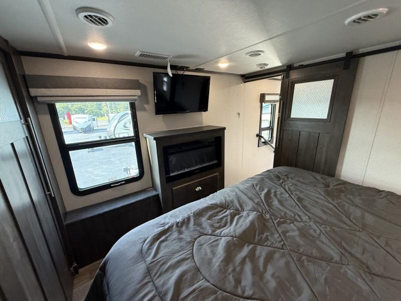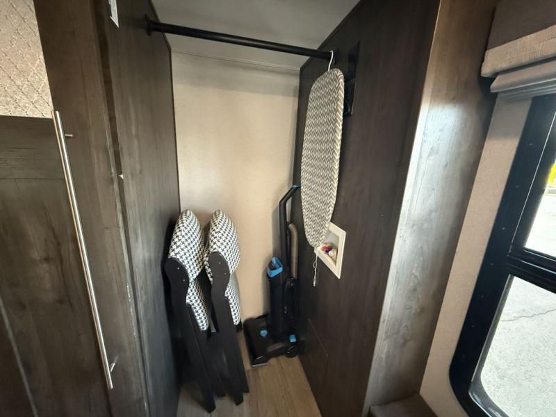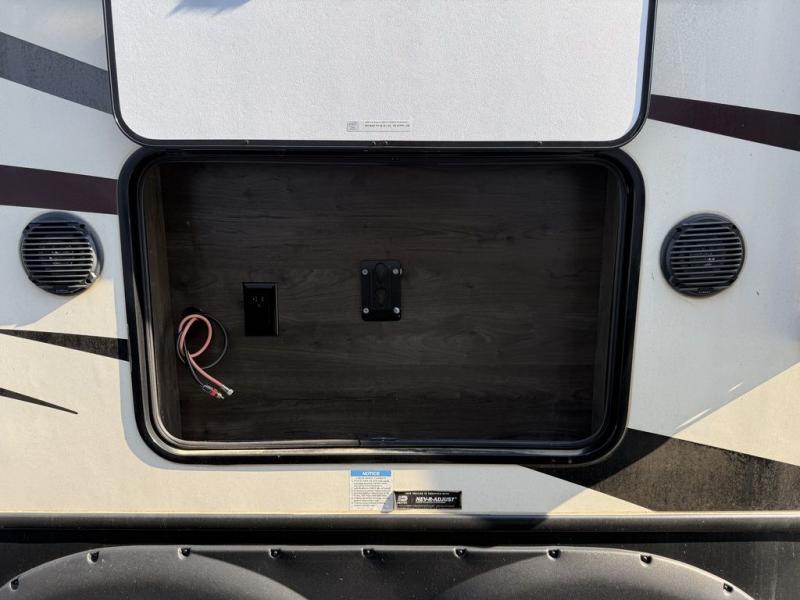 The whole family will love traveling in this Cardinal Luxury fifth wheel by Forest River. Meal prep will be a breeze thanks to the Hisense four-door refrigerator and the kitchen island with a double sink and high-rise single-handle pull-down faucet. At night, you can either relax on the theater seating or the hide-a-bed sofa across from the entertainment center with a pop-up TV, or you can jump into the king-size bed and rest up for your next adventurous day. Inside the front private bedroom there is also a wardrobe with shelves, a dresser with a fireplace, and a closet that is prepped to add the optional washer/dryer, plus there is even a 32" LED HDTV. Either way, you are sure to enjoy your camping experience in this fifth wheel!