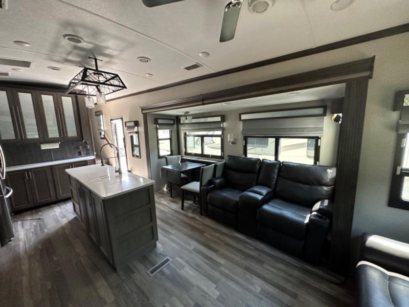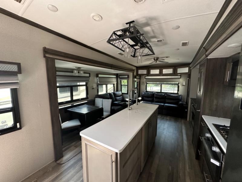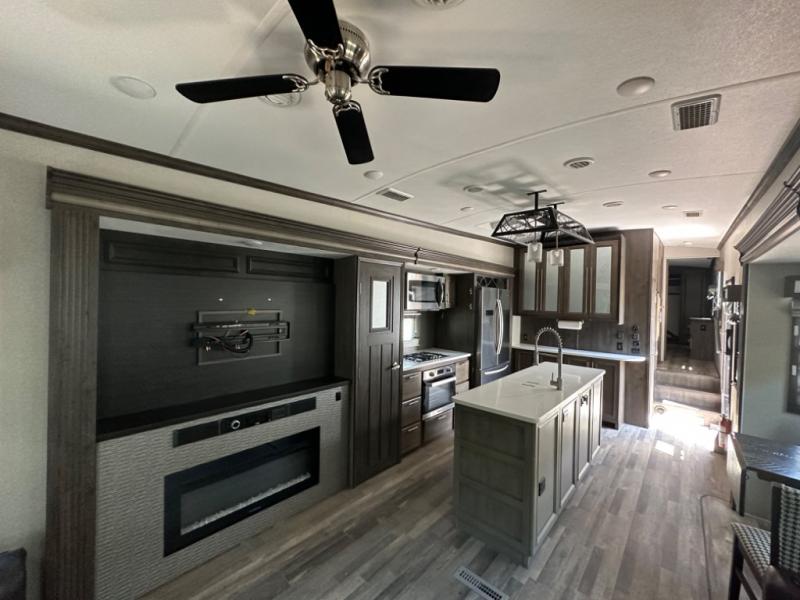 In any Forest River Cardinal Luxury fifth wheel, you will find comfort and convenience both inside and out as these units were built with your enjoyment in mind. Each unit features a vacuum-bonded, welded aluminum structure and includes a “Level Up” 6-point one-touch automatic hydraulic leveling system. Each Cardinal Luxury model also has chambered frame technology and a hydraulic slide system with 2.5" steel rams. You will also appreciate the at-home touches on the interior that give each unit a luxurious feel like the crown molding ceiling and cabinet trim, the electric fireplace, the full-height hanging wardrobe, and the pendant lighting in the kitchen area. The outside of each model also has a high-end look with its premium high-gloss gel-coat fiberglass!