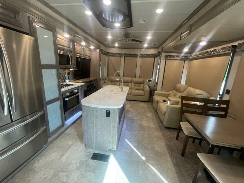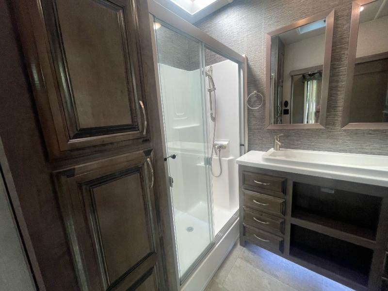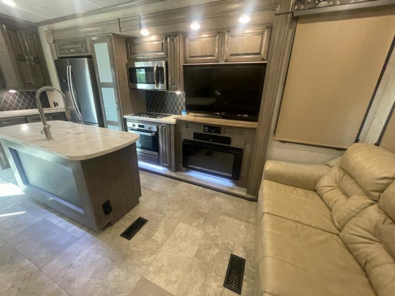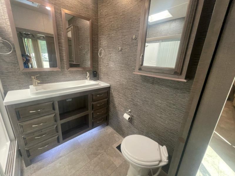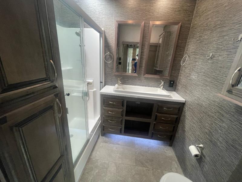 Experienced RV'ers appreciate the Cedar Creek Cottage destination trailer by Forest River which feature a design to withstand rugged road conditions and extreme temperatures. Each model has a 12V Home Theater System which includes a 50" Insignia TV with swing arm and a Control App for your smart devices. You'll appreciate a solid wood dresser in the bedroom for all your clothes and a space that has been prepped for an optional washer and dryer. The bathroom features an 18" tall porcelain toilet and a large, double stack bathroom mirror medicine cabinet with overhead makeup lights and in the kitchen the crown molding complements all the overhead cabinets to add luxury. These models also include a 36" fireplace with a thermostat, an Intra-vac central vacuum system, a full pantry in the kitchen, plus many features you are sure to love.